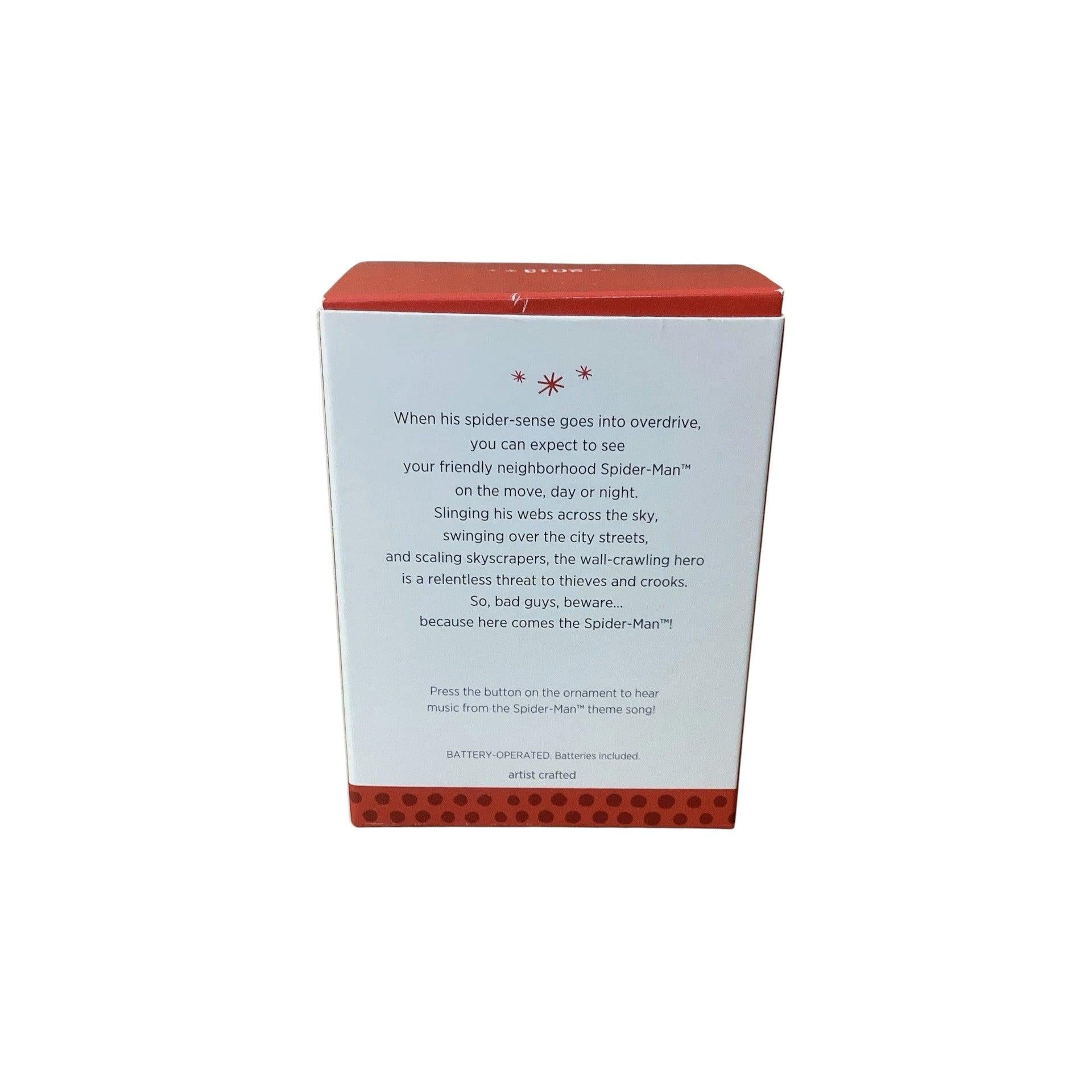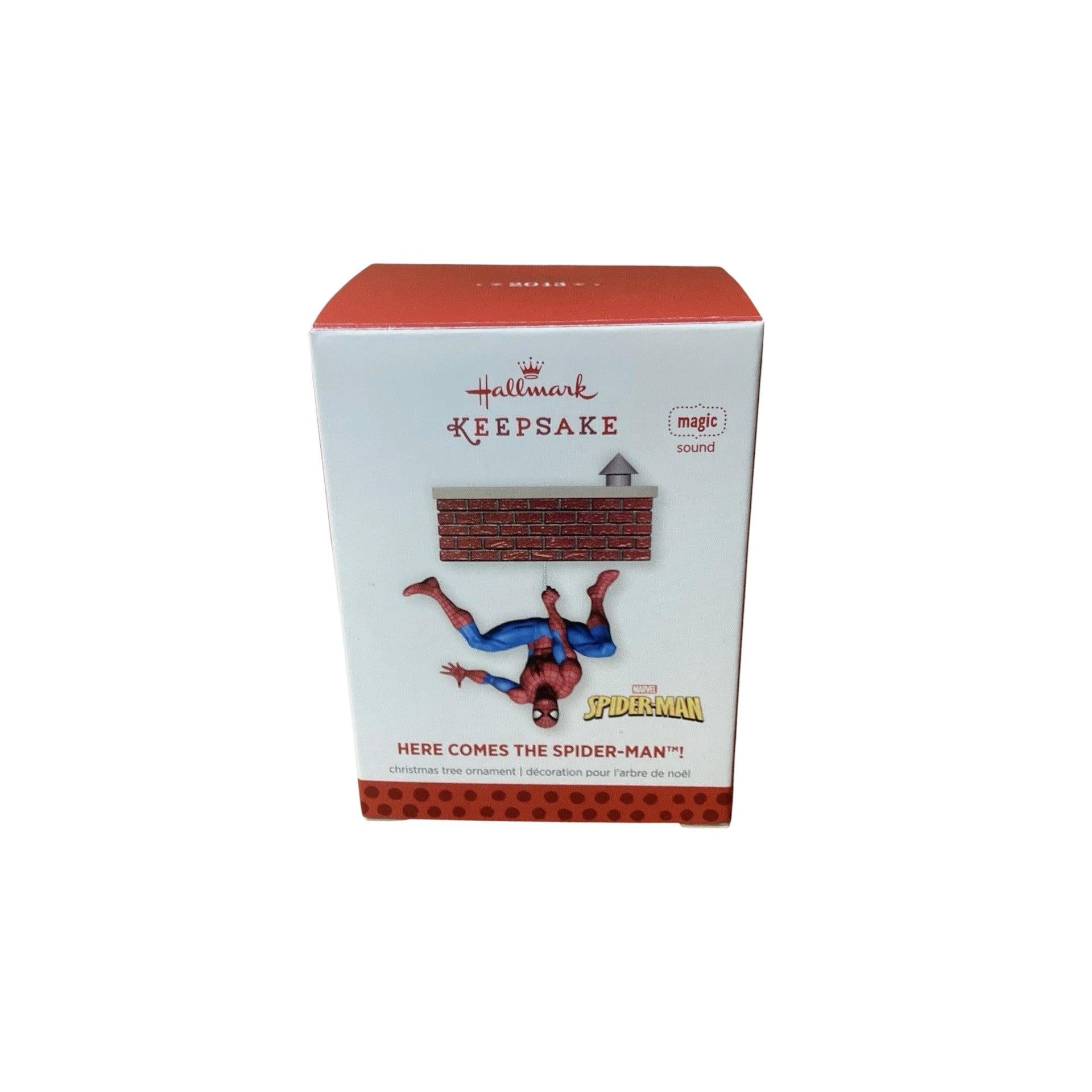 This Hallmark Christmas tree ornament titled “Here Comes The Spider-Man!” features Spider-Man, one of Marvel’s most iconic super heroes, captured in a dynamic action pose. The design highlights Spider-Man’s classic red and blue suit with web detailing, conveying movement and energy as if he’s swinging into action. Sculpted textures and bold colors make this ornament a standout piece for Marvel fans and superhero collectors alike. The ornament comes new in its original Hallmark box, including a molded protective insert and hanging attachment. No batteries, cords, or light strings are required.