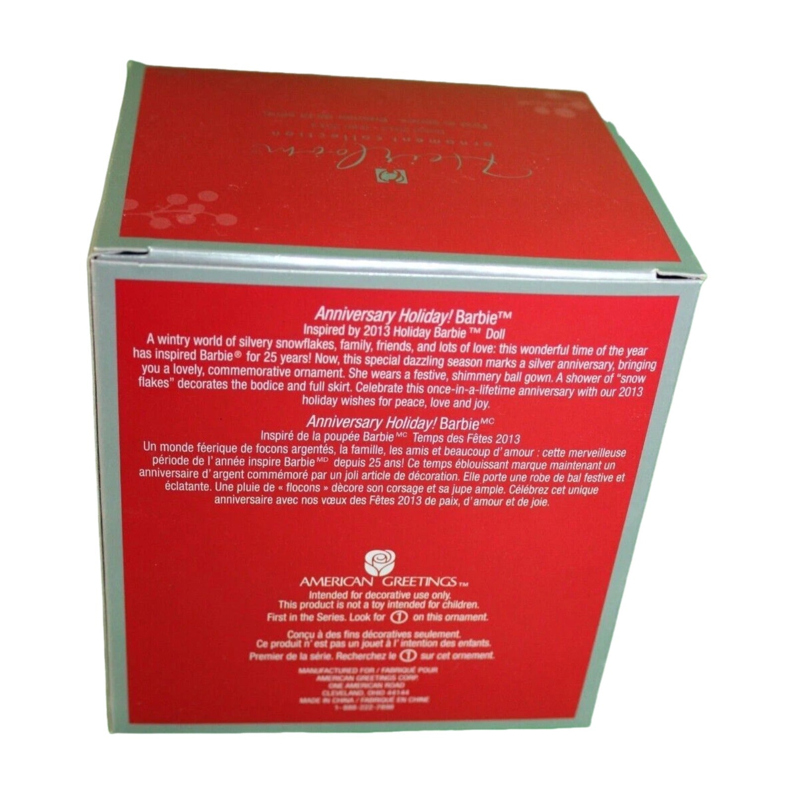 Celebrate Barbie’s holiday elegance with the 2013 Holiday Barbie ornament from Carlton Cards’ Heirloom Collection. Featuring Barbie in a silver ball gown accented with lace, tulle, and a sparkling snowflake charm, this ornament captures festive sophistication. Packaged mint in box with molded clamshell and hang tag—no batteries or cords required. Hang her on your tree and enjoy dazzling holiday style!
