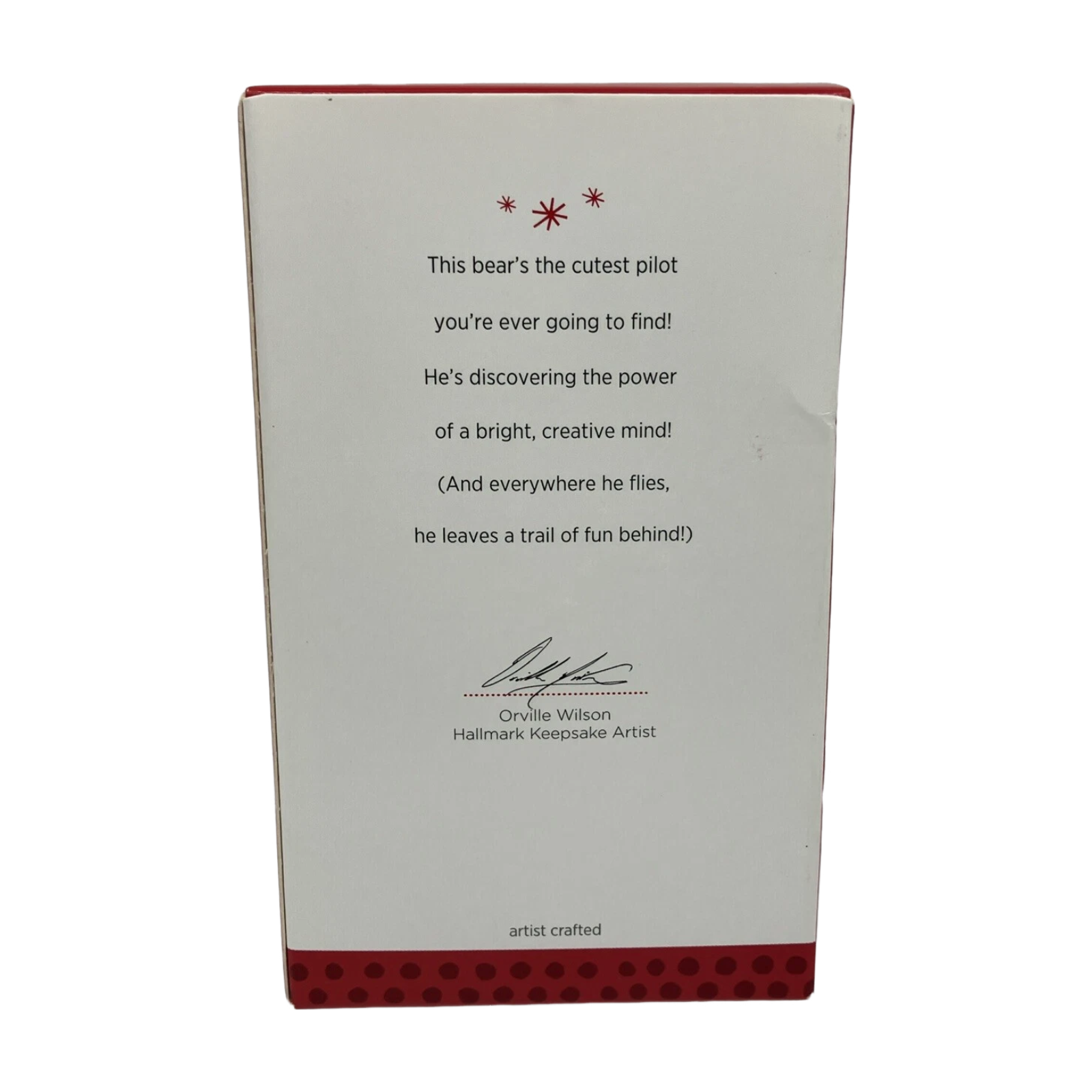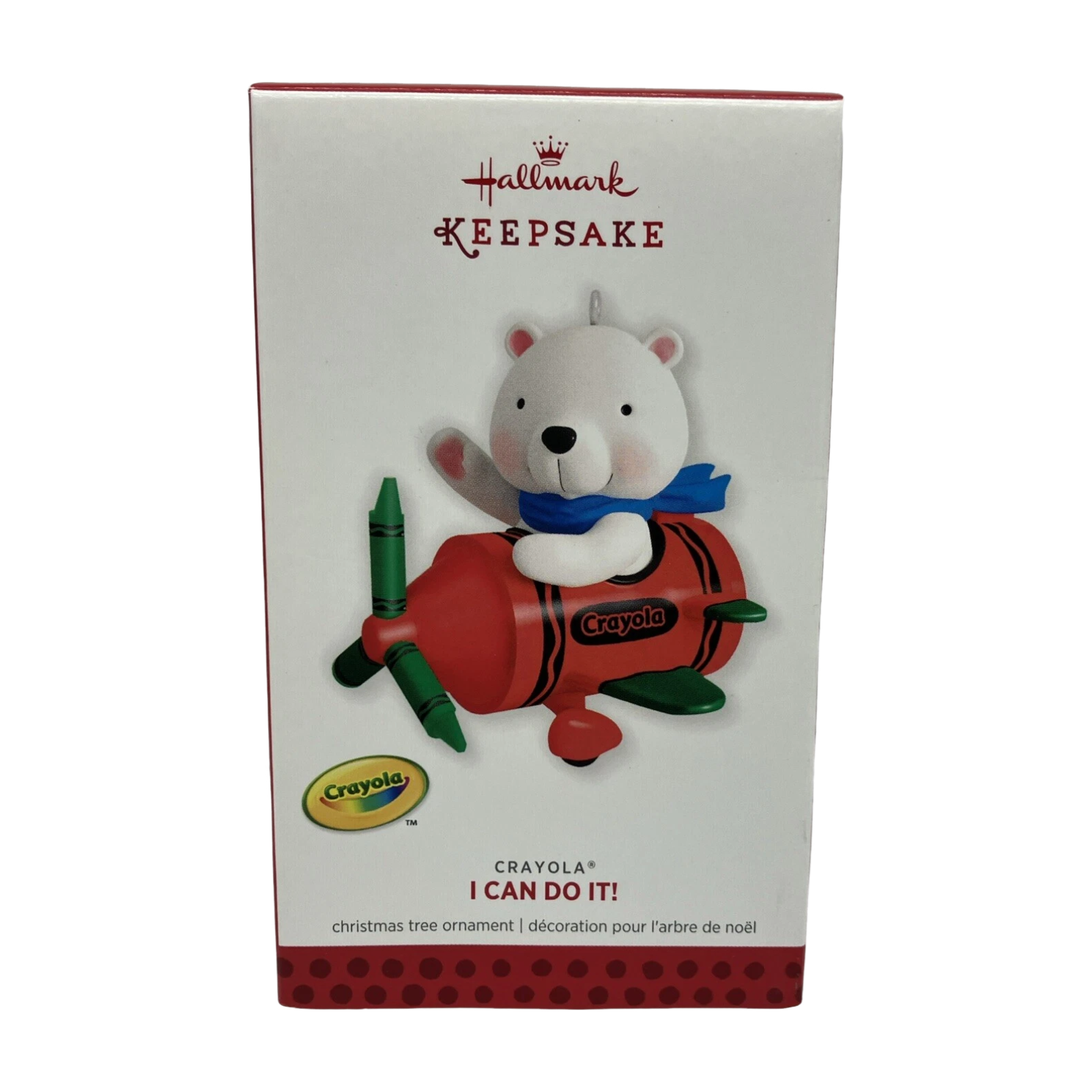 Ignite your holiday nostalgia with the 2013 I Can Do It! (Crayola Crayons) ornament—a joyful celebration of childhood creativity. This tiny airplane, crafted from Crayola crayons, lifts off with an adorable bear pilot at the helm, trailing fun and imagination through your festive décor. Designed by Orville Wilson, the ornament embodies playful wonder and comes boxed and ready to hang—no power required.