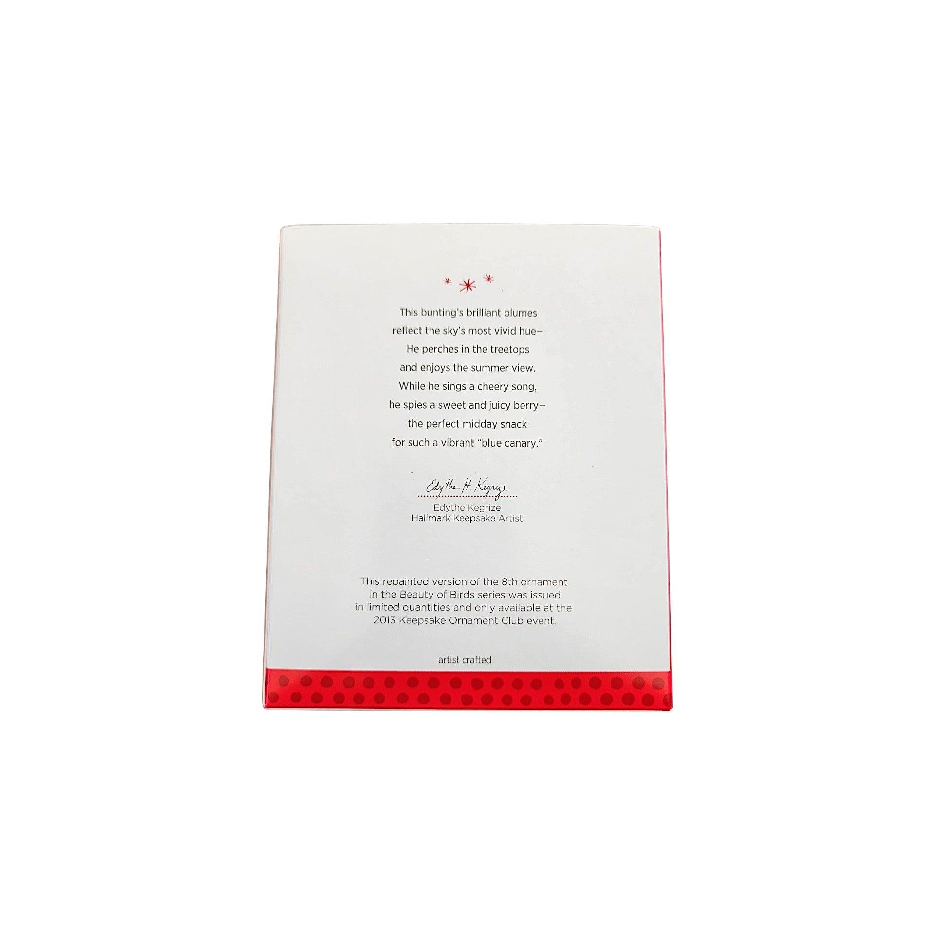 Celebrate the beauty of nature with the Indigo Bunting ornament from Hallmark’s Beauty of Birds series. Introduced in 2013, this striking ornament features the vibrant blue songbird perched gracefully, with realistic sculpting and rich coloration that highlights the natural elegance of this beloved species. Known for its brilliant blue feathers, the indigo bunting is beautifully rendered, making this ornament a favorite among bird lovers and collectors. The ornament comes packaged in its original Hallmark Keepsake gift box with packaging materials. This ornament is decorative only and does not require batteries, cords, or light strings.