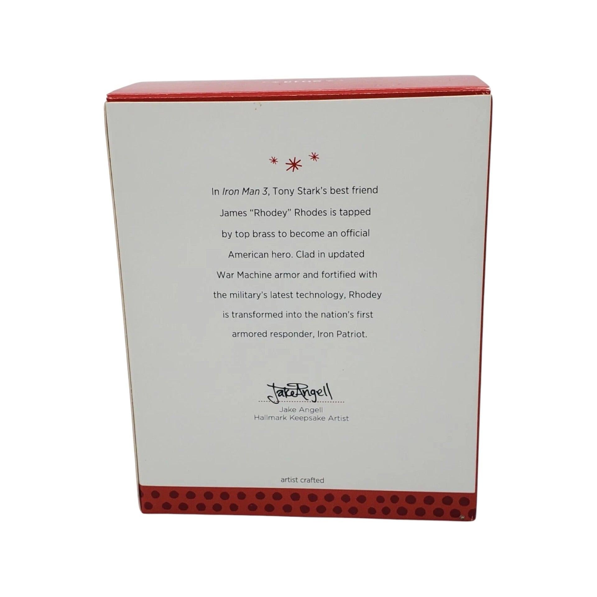 Suit up your tree in red, white, and blue with the 2013 Iron Patriot Keepsake ornament. Inspired by Iron Man 3, this ornament features James “Rhodey” Rhodes in the military’s updated War Machine armor rebranded as Iron Patriot—decked out in patriotic trim and detailing to match the bold look from the film. It comes with the ornament itself, the original tag, and the Hallmark Keepsake box.