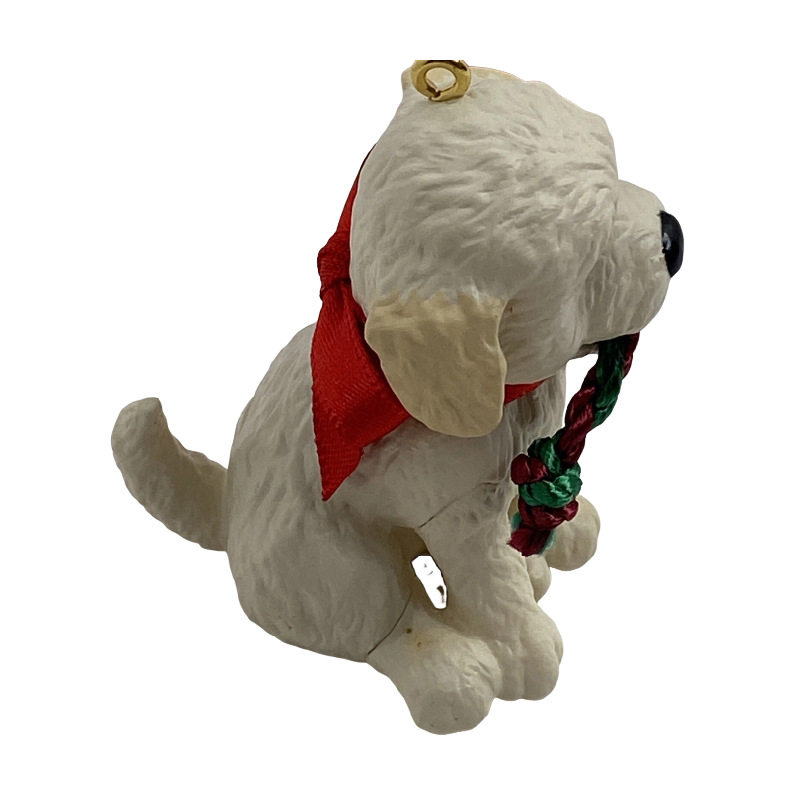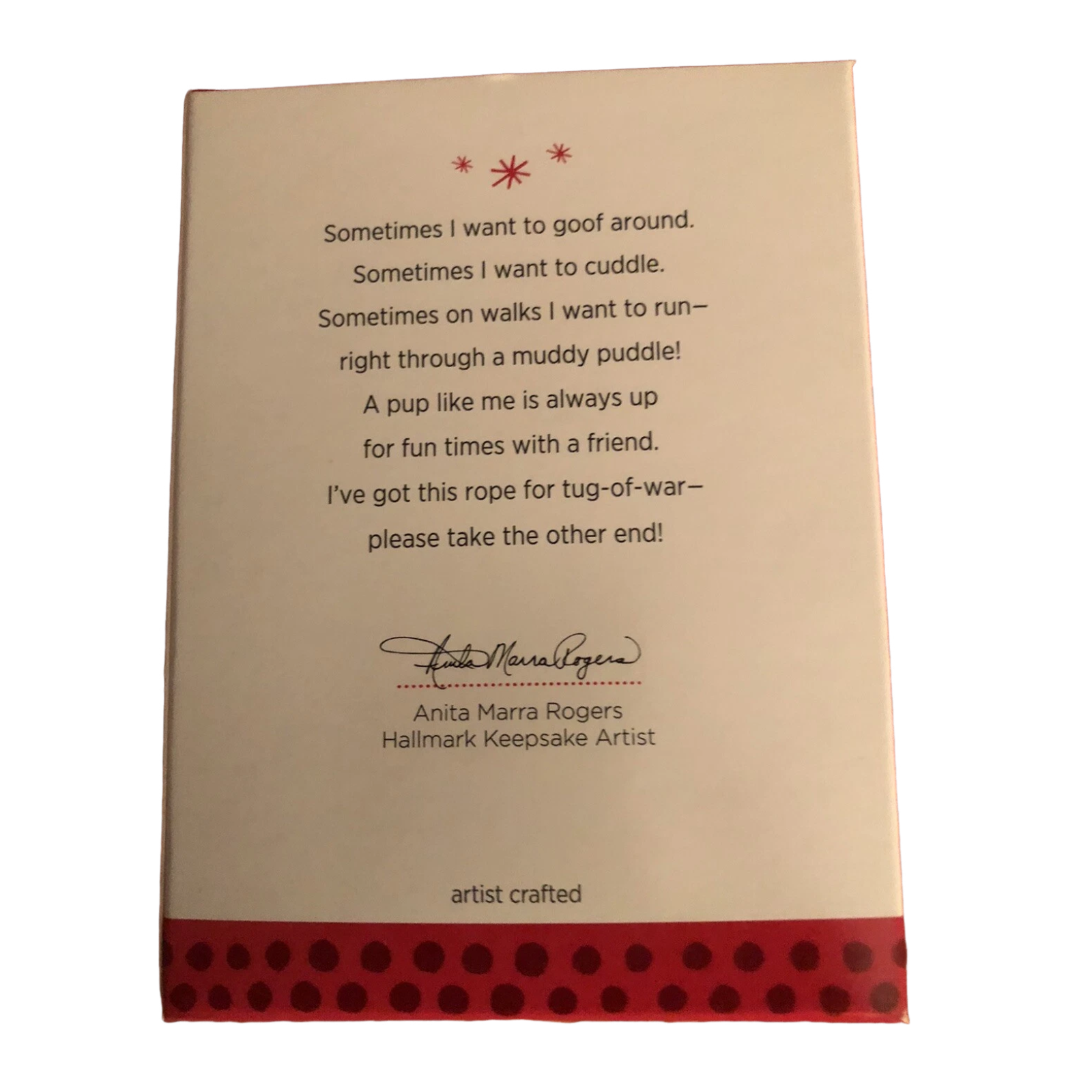 The 2013 Labradoodle (Puppy Love) ornament is the 23rd in Hallmark’s beloved Puppy Love series—an adore-worthy addition for dog lovers and collectors. This charming design features a fluffy Labradoodle with curly fur, a sweet expression, and a heart-shaped brass tag stamped “2013” hanging from its collar. The ornament measures about 1.375″ wide × 2.375″ high × 2″ deep. It comes with its original box when new or mint-in-box, which adds to its appeal and collectible value.