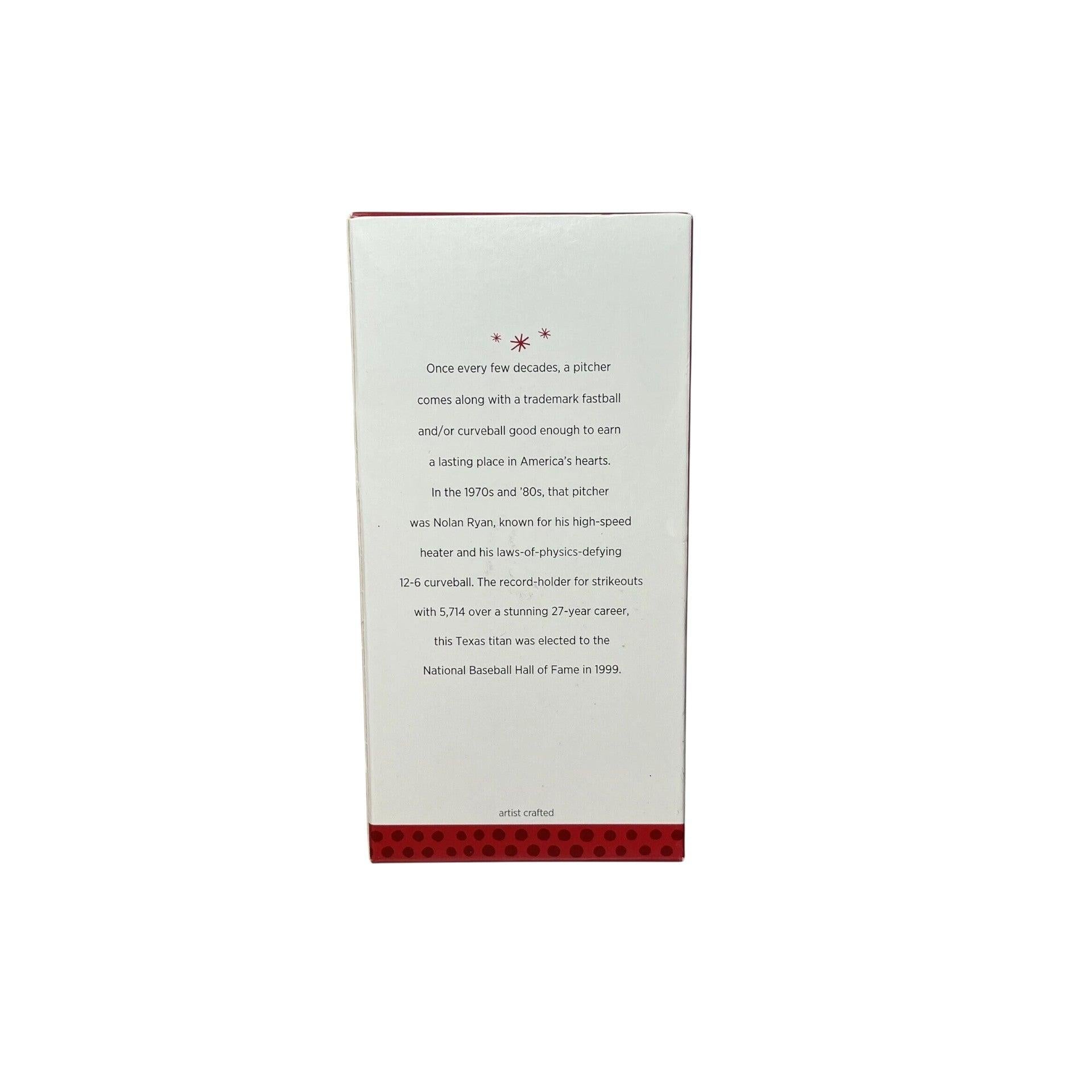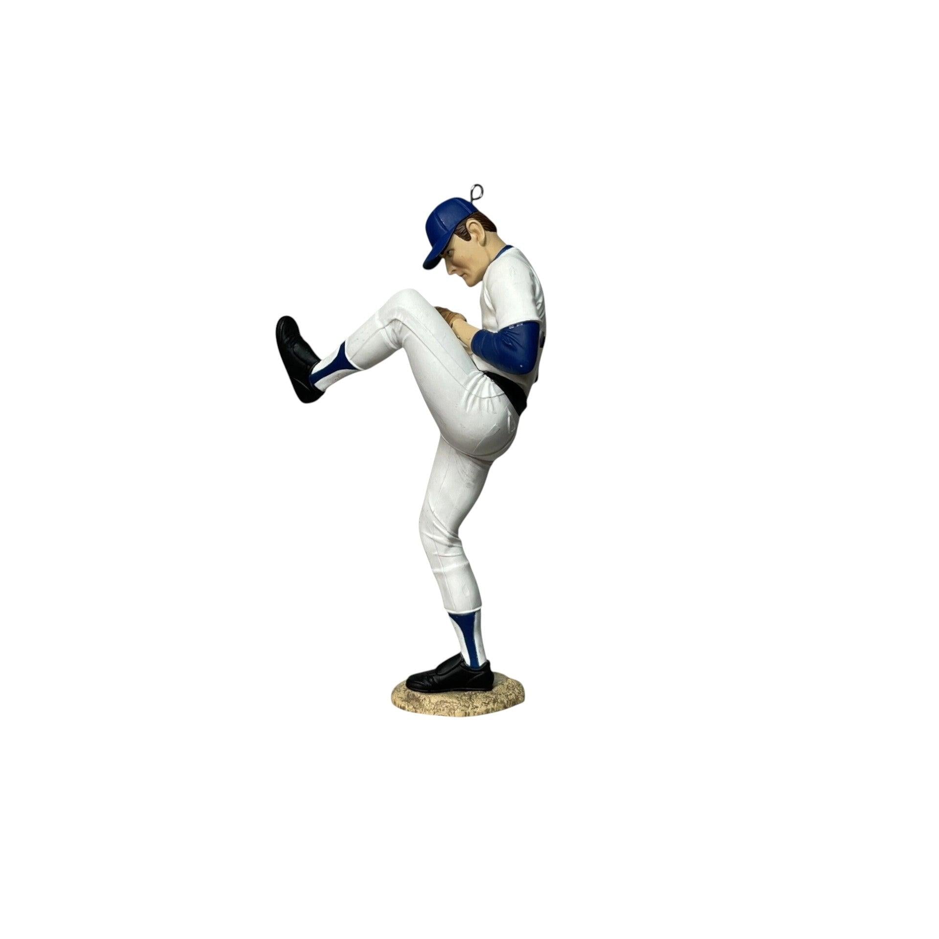 Celebrate one of baseball’s greatest legends with this collector’s ornament from Hallmark’s At the Ballpark series. The 2013 edition, Nolan Ryan, captures the Hall of Famer mid-pitch, showcasing his iconic form that defined over two decades in Major League Baseball. Perfect for baseball fans and sports collectors, this ornament honors the record-setting pitcher with authentic uniform details and dynamic motion design. Comes in its original Hallmark box, ready to hang — no batteries, cords, or lights required.