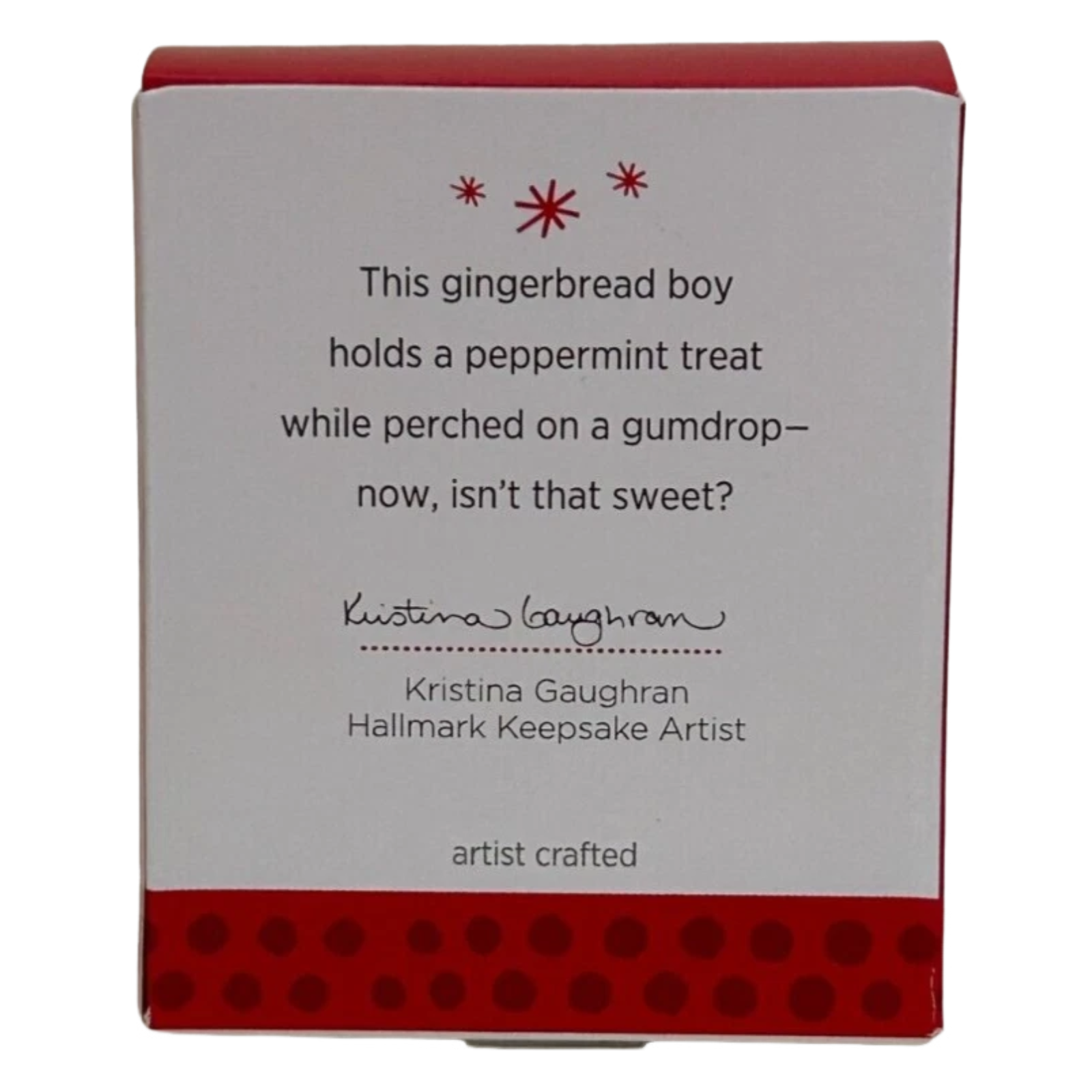 Materials: Resin or resin-type sculpted material with painted finish and glitter accents (typical for miniature “Gumdrop” theme). While exact material specification is not fully detailed, official listing describes it as a miniature Keepsake ornament.