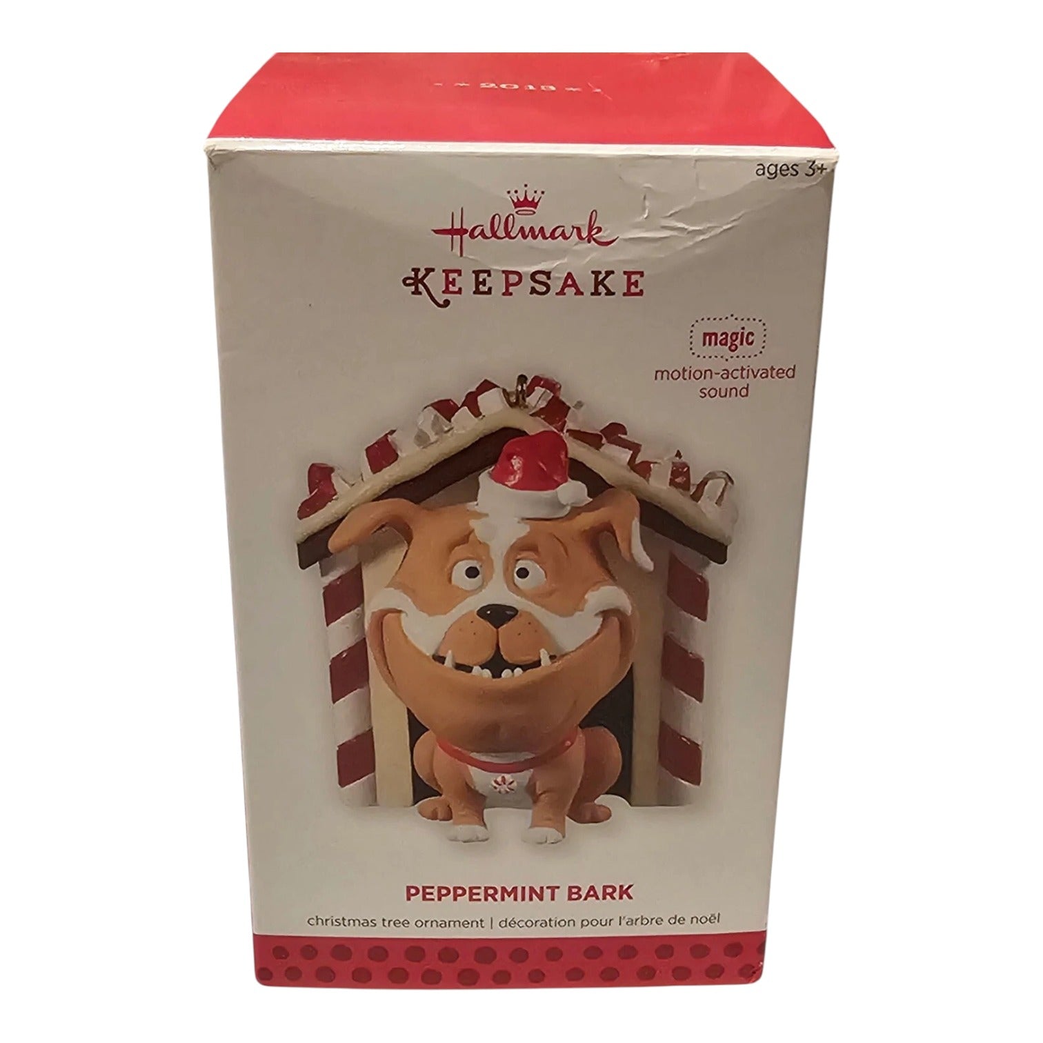 This spirited ornament features a playful puppy-guard named “Peppermint Bark,” perched inside a peppermint-stick decorated doghouse, alert and ready to guard the presents under your tree. With motion-activated sound, every time someone walks by the tree, the puppy emits “barky” comments—adding humor and interactive charm to your holiday décor. The candy-cane doghouse design, cheerful puppy sculpt and Gold Crown exclusive status give this piece a novelty appeal that blends whimsy and collectibility. A fun pick for both dog-theme ornament collectors and fans of Hallmark’s animated/Magic line.