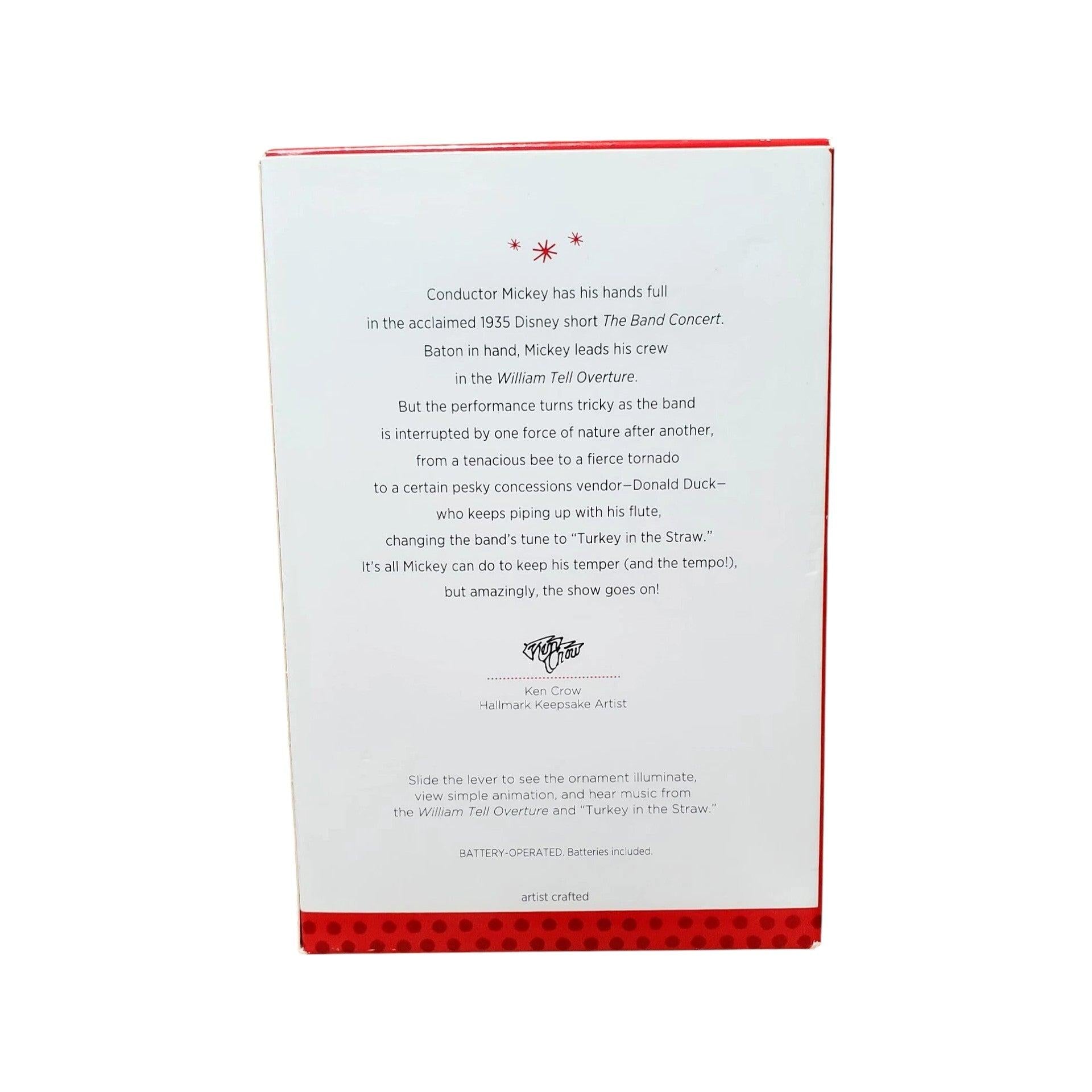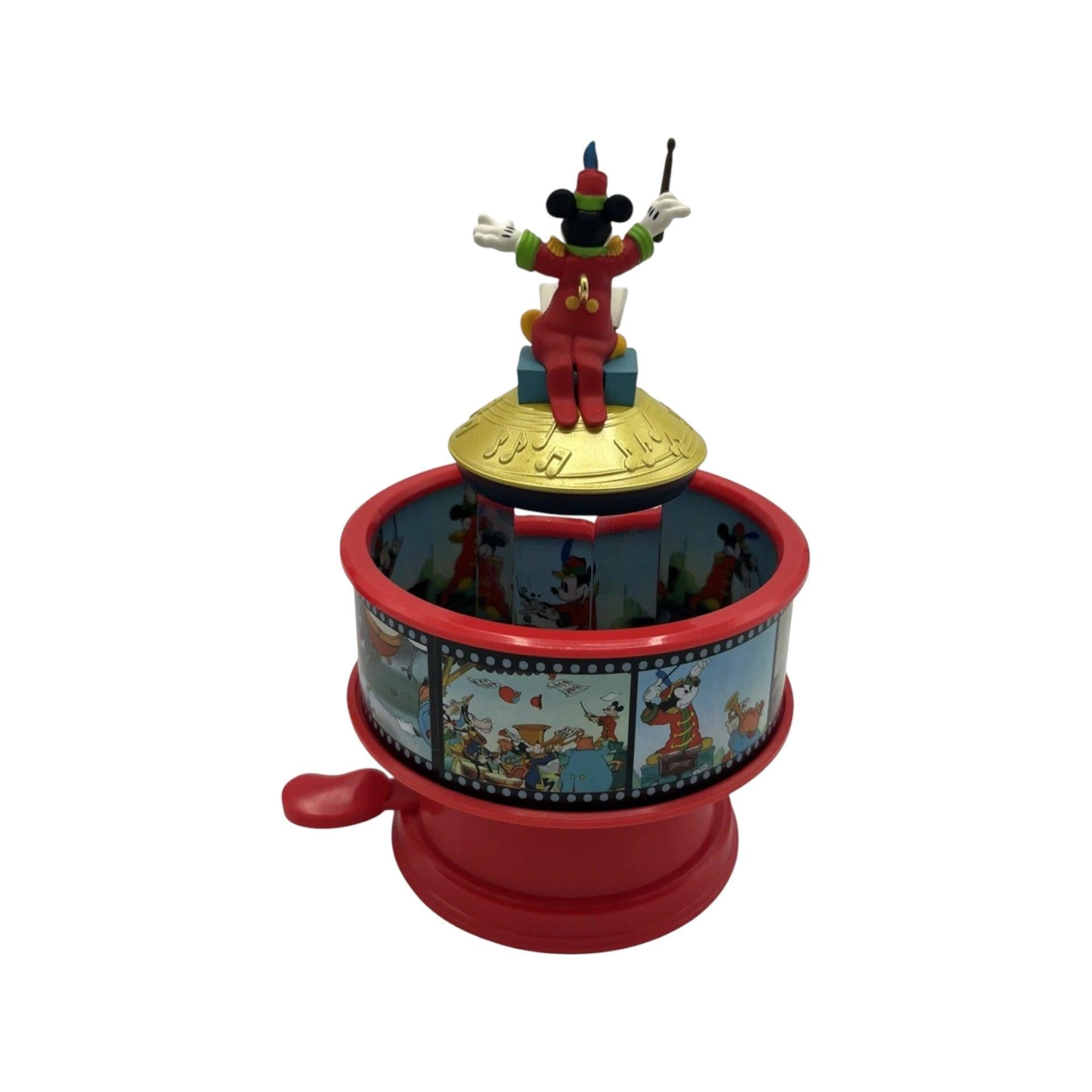 This lively ornament captures Mickey Mouse as the conductor of the orchestra in the classic 1935 Disney cartoon The Band Concert, complete with light, sound and motion features that bring the performance to life. A lever or slide activates the lights and plays the memorable “William Tell Overture” from the short (with interruptions and antics characteristic of the cartoon). The detailed sculpt shows Mickey with his baton raised, musicians around him and animated elements that reflect the cartoon’s chaos — making it a standout for Disney-theme and music-theme collectors. Because it’s part of the “Magic” line from Hallmark and features licensed Disney imagery, it holds significant collectible appeal.