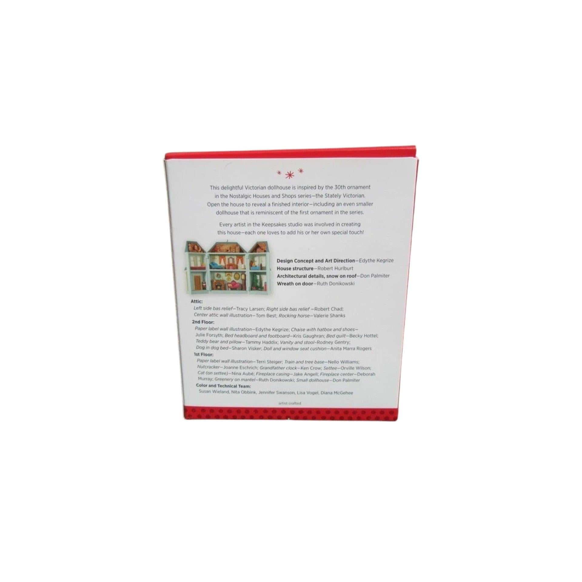 Add timeless charm to your holiday display with the Victorian Dollhouse ornament from Hallmark’s Nostalgic Houses and Shops series. Introduced in 2013, this beautifully detailed miniature house showcases classic Victorian architecture with ornate trim, multiple windows, and traditional styling that evokes the warmth of old-fashioned Christmas villages. Designed to coordinate with lighted displays, this piece makes a wonderful focal point for collectors who enjoy creating illuminated holiday scenes. The ornament comes packaged in its original Hallmark Keepsake gift box with packaging materials.