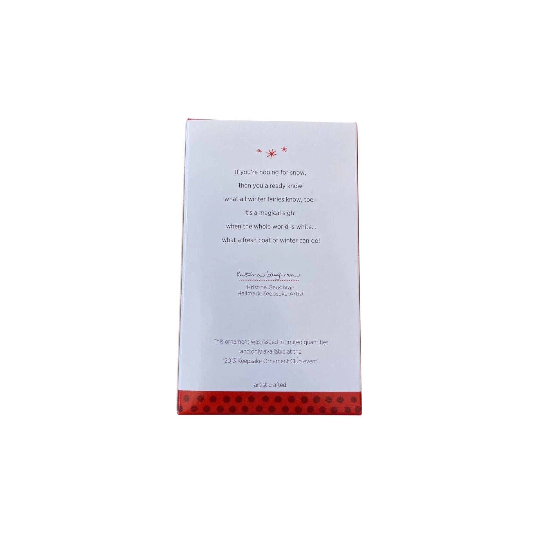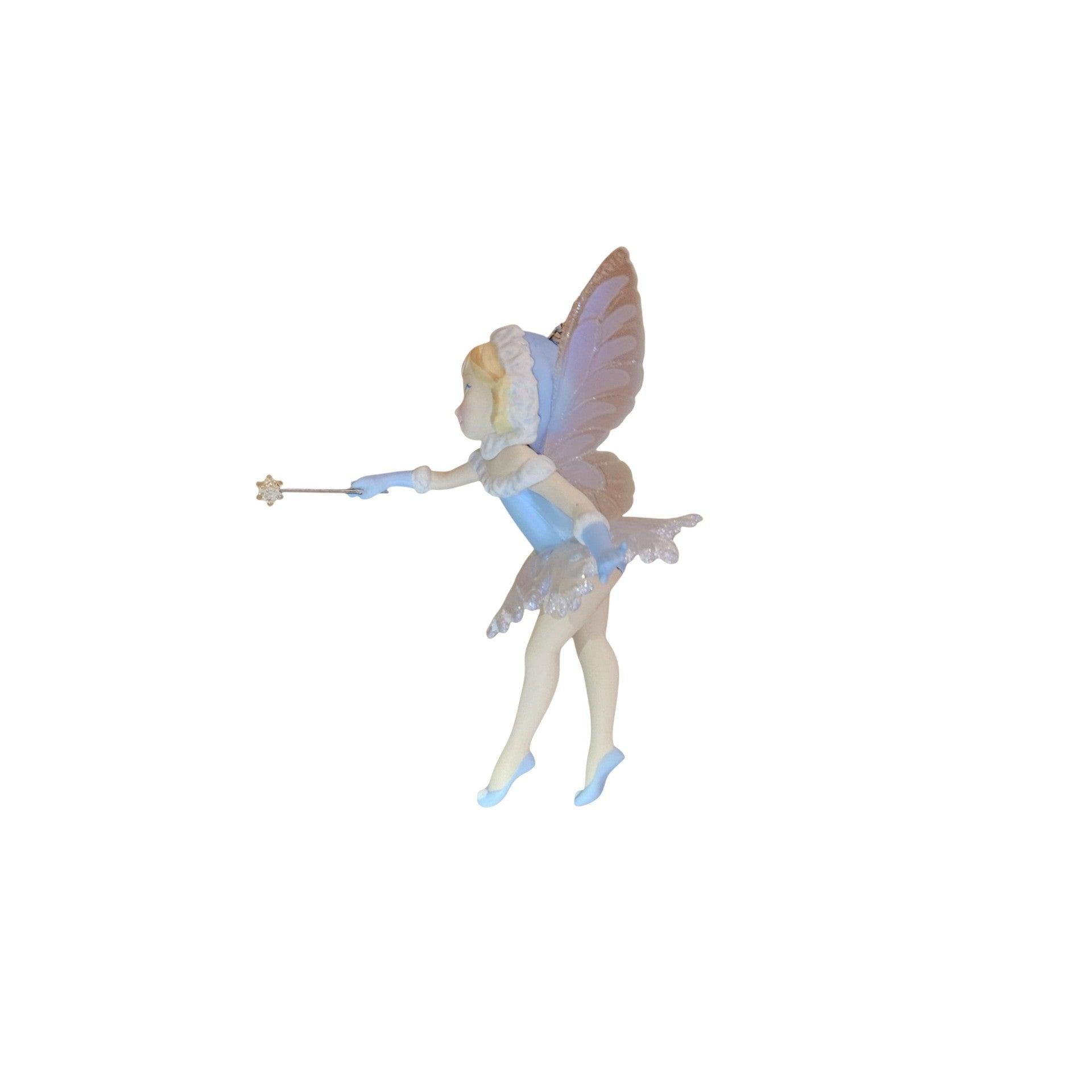 This enchanting 2013 Hallmark ornament features a delicate Winter Fairy, dressed in a soft icy-blue gown with frosted snowflake accents and translucent glitter-tipped wings. Her flowing hair, graceful pose, and gentle winter-themed details make her a magical addition to fairy, angel, and fantasy-themed Christmas trees. This ornament was released as a limited edition, adding extra collectible appeal. The ornament includes the Winter Fairy figure and typically the original Hallmark Keepsake box when available. No batteries or cords are required.