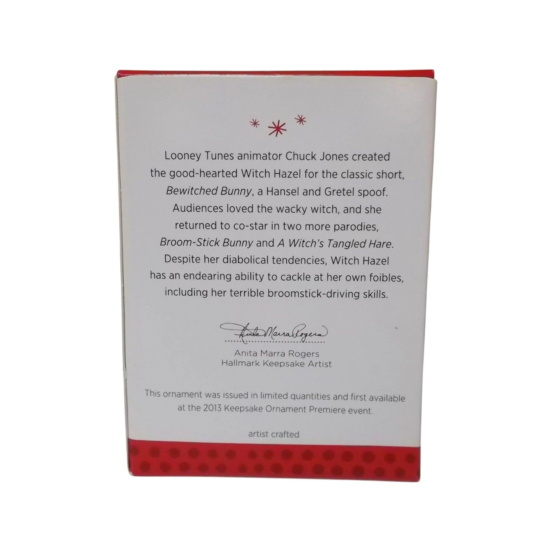 Stir a little witchy holiday mischief onto your tree with this enchanting limited-edition ornament. It captures Witch Hazel adorably decorating her broom with garland, red baubles, and a shining star, all while sporting her signature cackle-inducing grin. This collectible comes in its original box—most listings describe it as “mint in box,” though shelf wear may vary. No batteries, cords, or lights are needed—this piece brings festive fun without fuss.