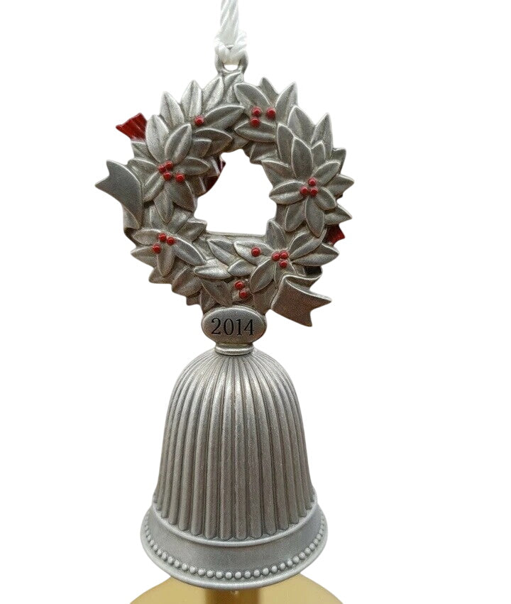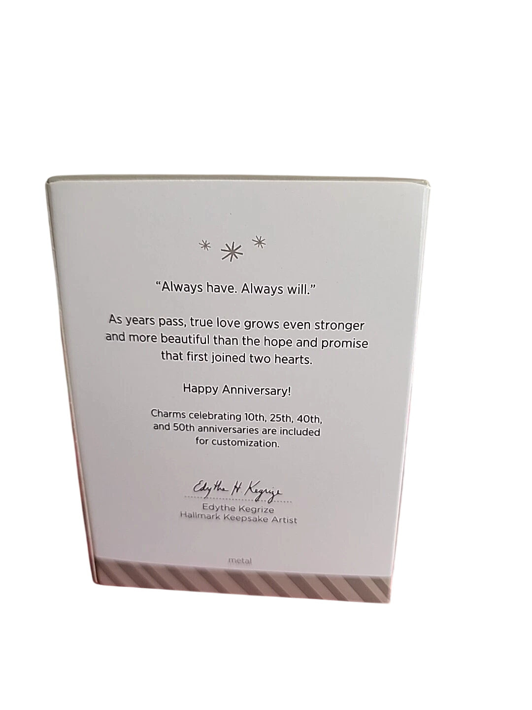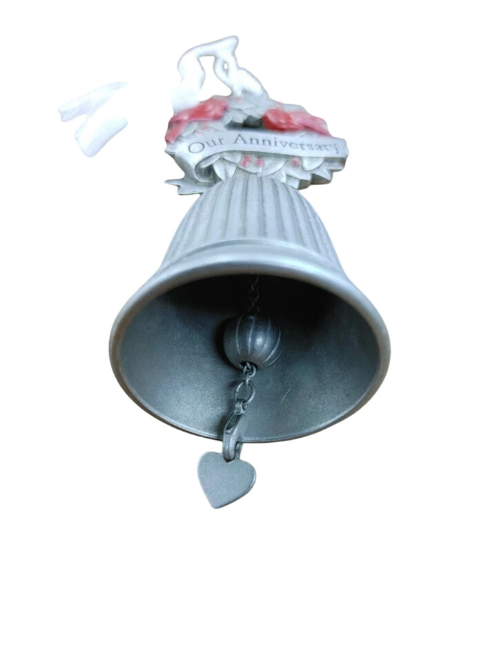 Celebrate your milestone with 2014 Anniversary Celebration (Bell), a Hallmark Keepsake ornament designed to honor lasting love. This beautifully crafted silver bell ornament, dated “2014,” features a charming wreath with two red cardinals perched atop. It comes with four small charms so you can personalize it for your 10th, 25th, 40th, or 50th anniversary. Made of metal, this piece is about 3¾″ high and includes the dangling charms and the date engraving. Includes the ornament itself; the original box if available. No lights, motion, or sound—just meaningful design and sentimental value.