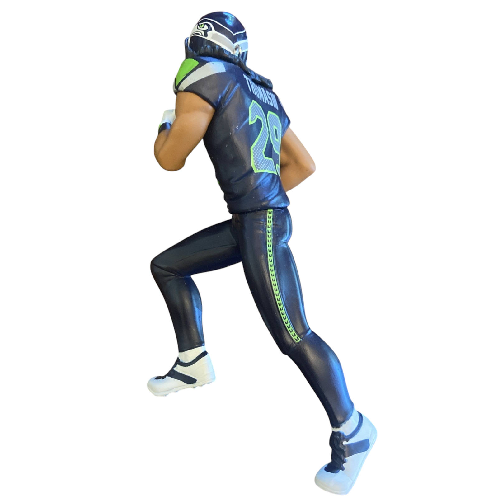 Embody the defensive excellence of Earl Thomas with this finely crafted 2014 Hallmark Keepsake ornament from the Football Legends series. The figure captures the dynamic safety in action, gloved hand ready, clad in his signature Seattle Seahawks #29 uniform. A Hallmark Gold Crown Exclusive, this collectible arrives mint-in-box with its original packaging and tag—perfect for display or gifting. This is a static ornament—no batteries, cords, or power needed.