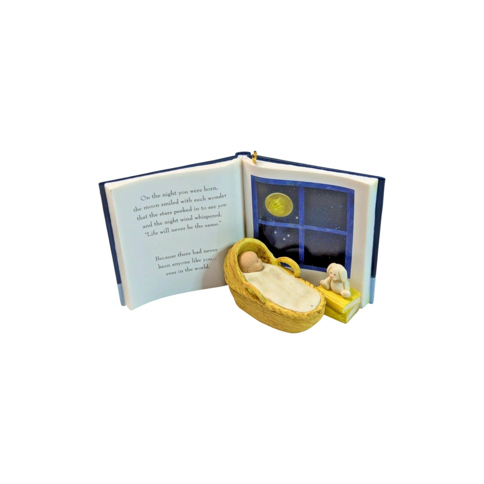 Mark a special milestone with the 2014 On the Night You Were Born Keepsake Ornament — a heartfelt collectible from Hallmark designed to celebrate new lives and beloved memories. This ornament, released as a Hallmark Gold Crown Exclusive, carries the timeless sentiment from the classic book On the Night You Were Born — a poetic message celebrating how meaningful each person is. The design often includes a pastel-themed decorative frame with space for a 2014 state quarter (or replica) to commemorate the baby’s birth year, blending keepsake charm with collectible appeal.