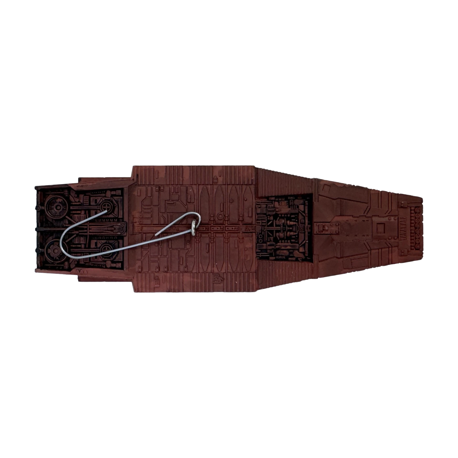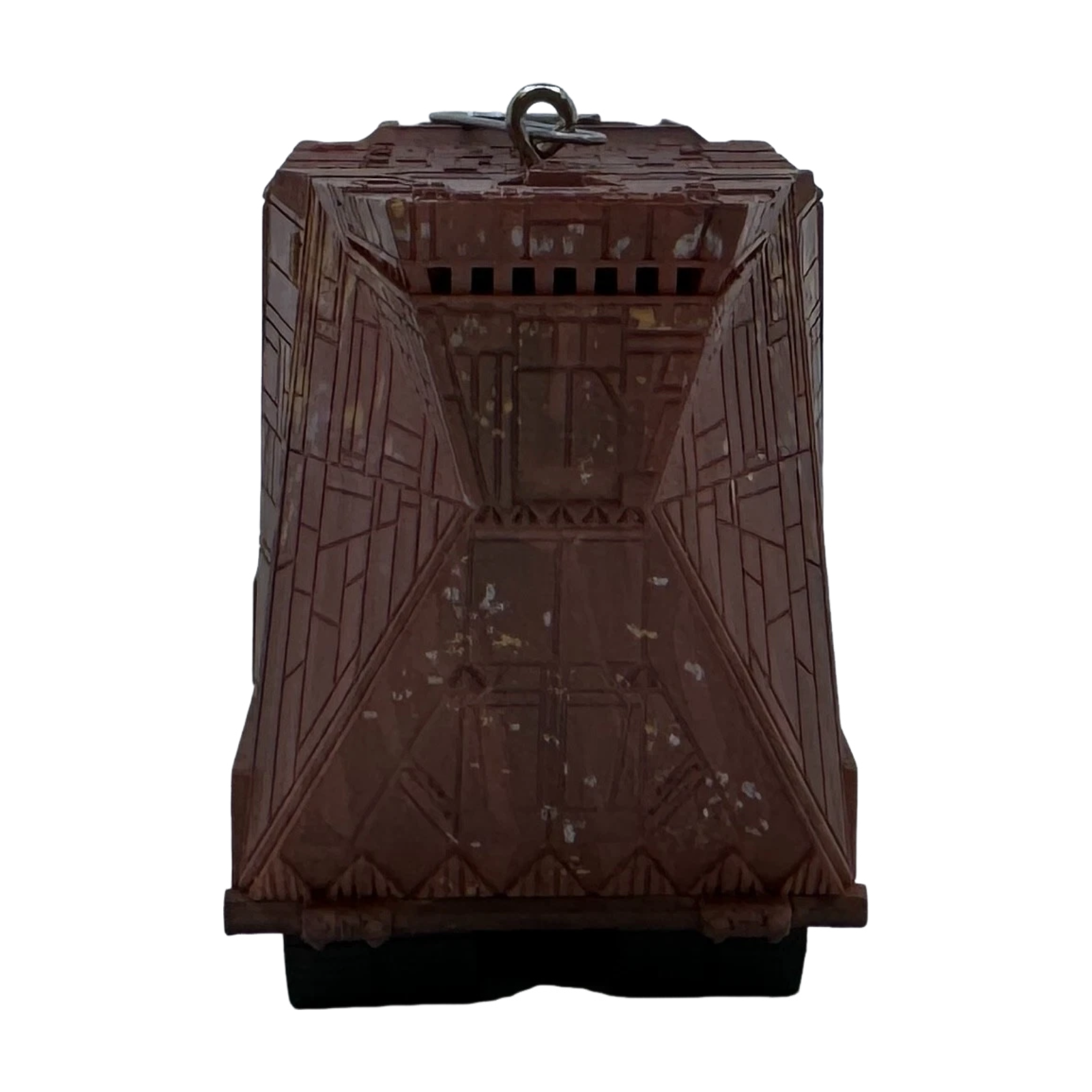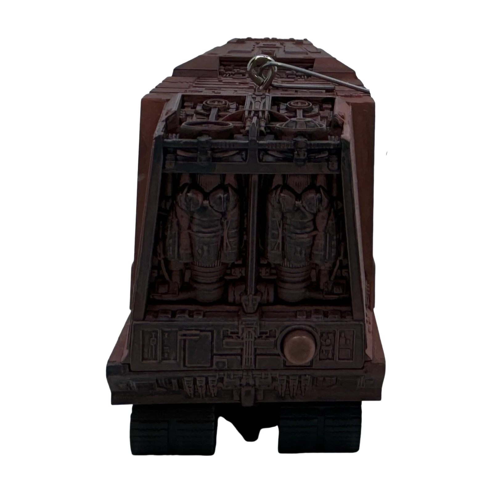 Roll into a Star Wars fan’s holiday décor with the 2014 Hallmark Keepsake Magic Sandcrawler ornament, a detailed replica of the Jawa transport from A New Hope. Press the hidden button to hear C‑3PO and R2‑D2 converse about their fate, while the crawler lights glow subtly, this interactive piece arrives mint-in-box with batteries included (2 × LR44)—no cords needed.