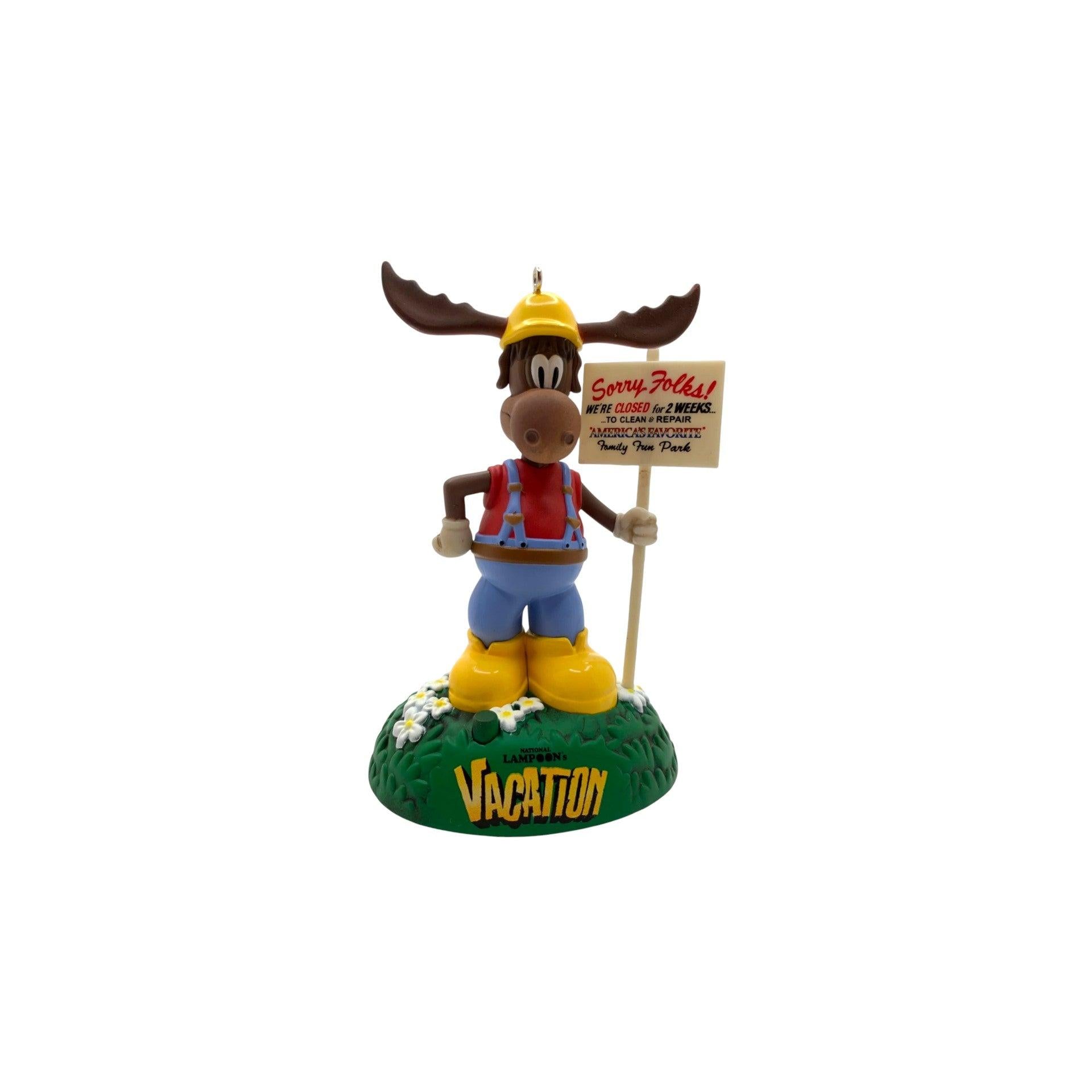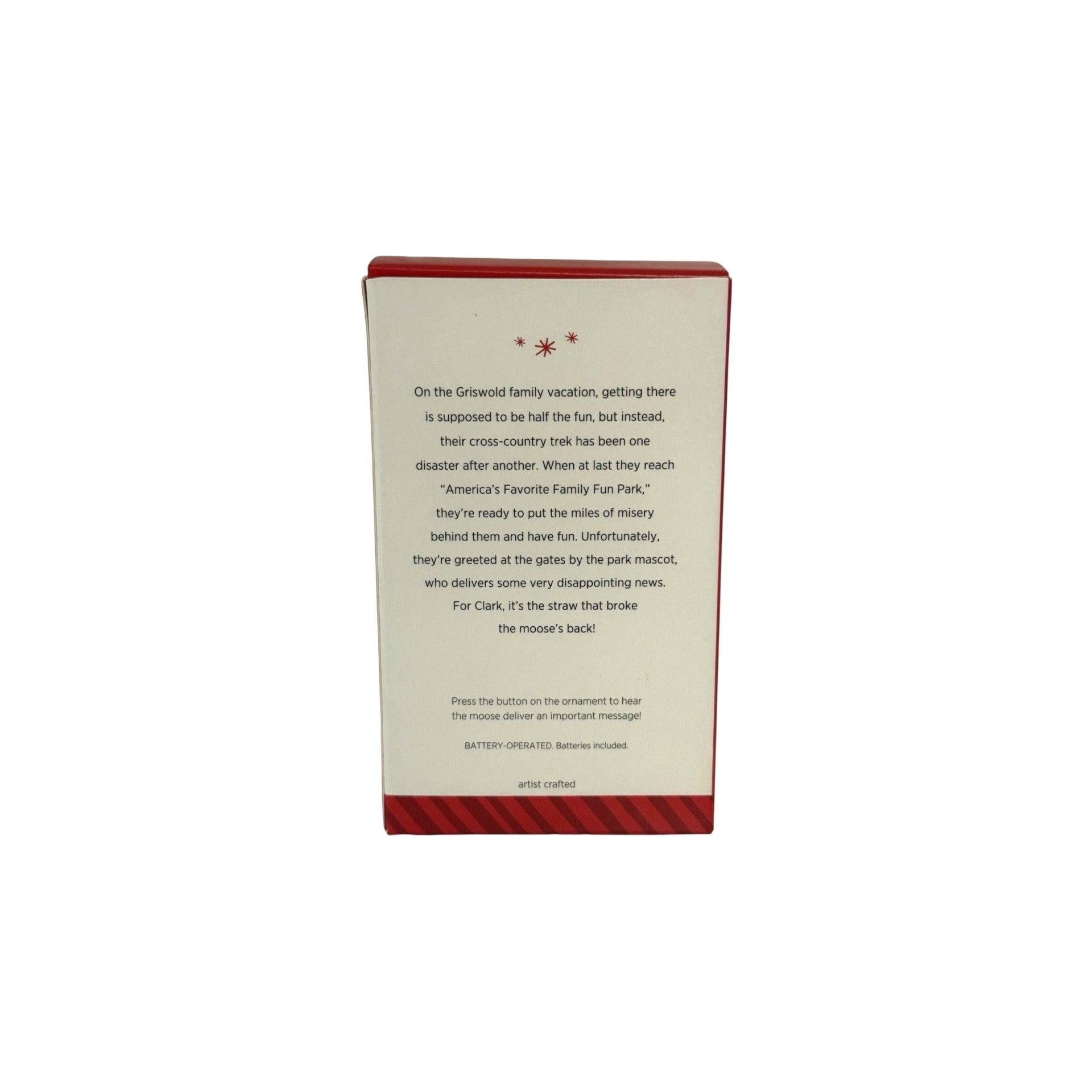 This 2014 Keepsake “Magic” ornament brings a scene from the beloved comedy film National Lampoon’s Christmas Vacation to your holiday tree: the golf-mascot moose delivers a memorable line from the movie when a button is pressed. The sculpt captures the character’s pose and expression in a resin/mixed-media form, and the video-clip or audio element (magic sound) adds interactive appeal. With its licensed film theme and novelty sound feature, it stands out among standard ornaments. Ideal for fans of the film, collectors of movie-themed Keepsakes, or anyone looking to add a fun adult-pop-culture holiday piece to their décor.