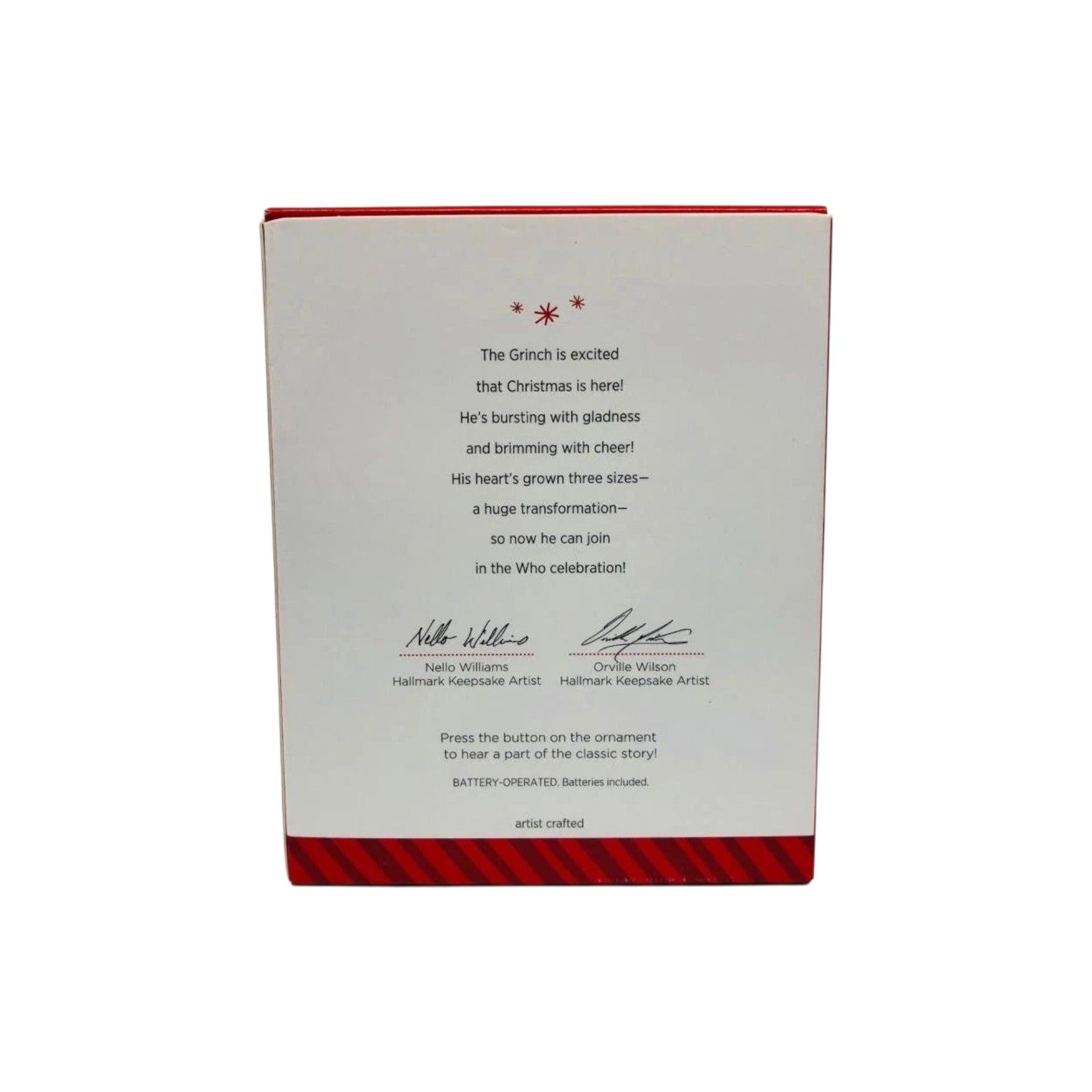 This heartwarming 2014 Hallmark ornament captures one of the most iconic moments from How the Grinch Stole Christmas!—the scene where the Grinch’s heart finally grows three sizes. The sculpt features the Grinch holding a bright red heart, his expression softening as he discovers the true meaning of Christmas. Styled with classic Dr. Seuss colors and whimsical detailing, this ornament is a festive favorite for Grinch lovers and Christmas-story collectors. The ornament includes the Grinch heart figure and typically the original Hallmark Keepsake box when available. Fully decorative—no lights, cords, or batteries required.