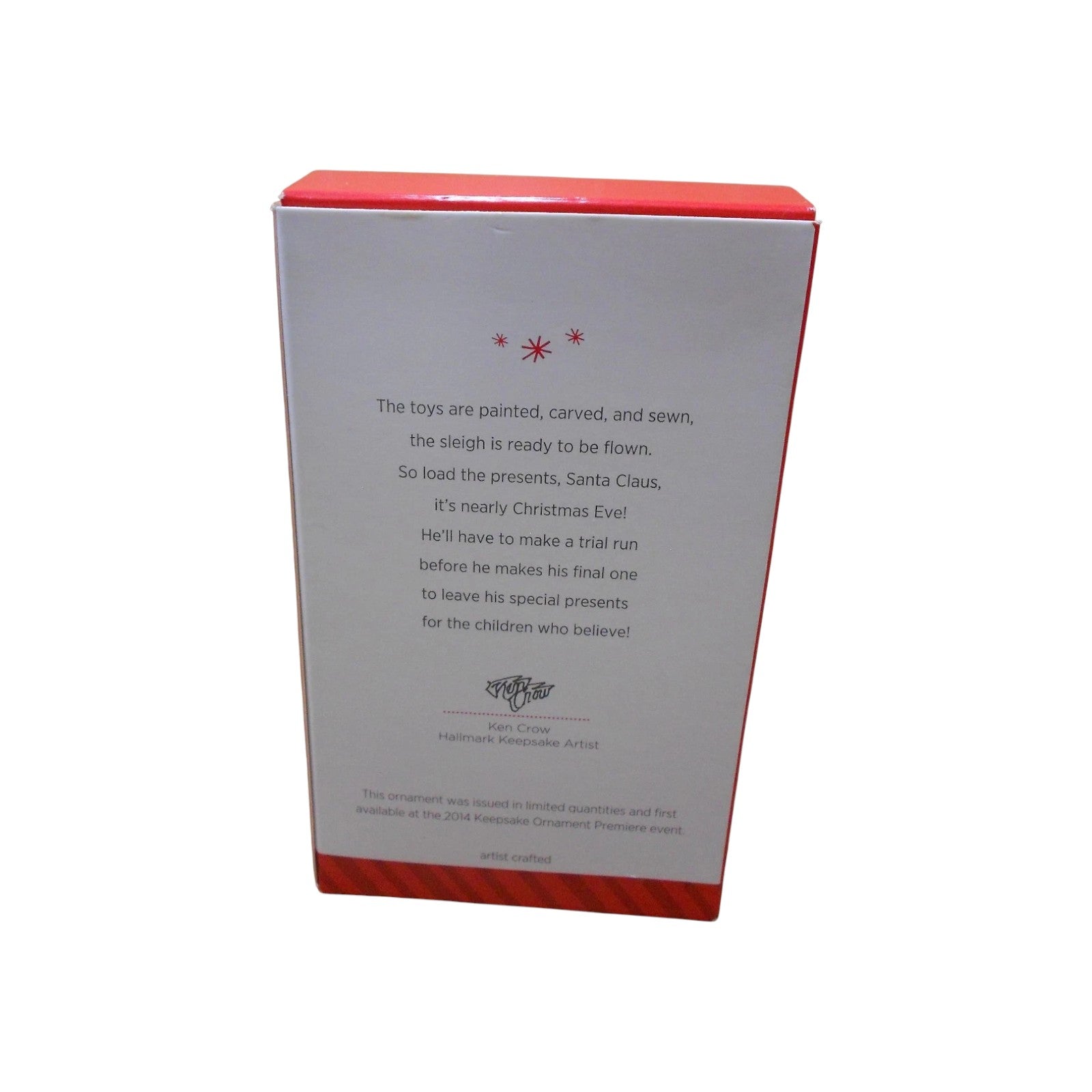 This delightful ornament from the beloved Toymaker Santa series features Santa hard at work crafting a tiny toy train, complete with rich detailing across his apron, tools, and holiday workshop accessories. His cheerful expression and vibrant colors capture the classic charm of this long-running series. The ornament comes in its original Hallmark Keepsake box and requires no cords, batteries, or power—simply hang and enjoy.
