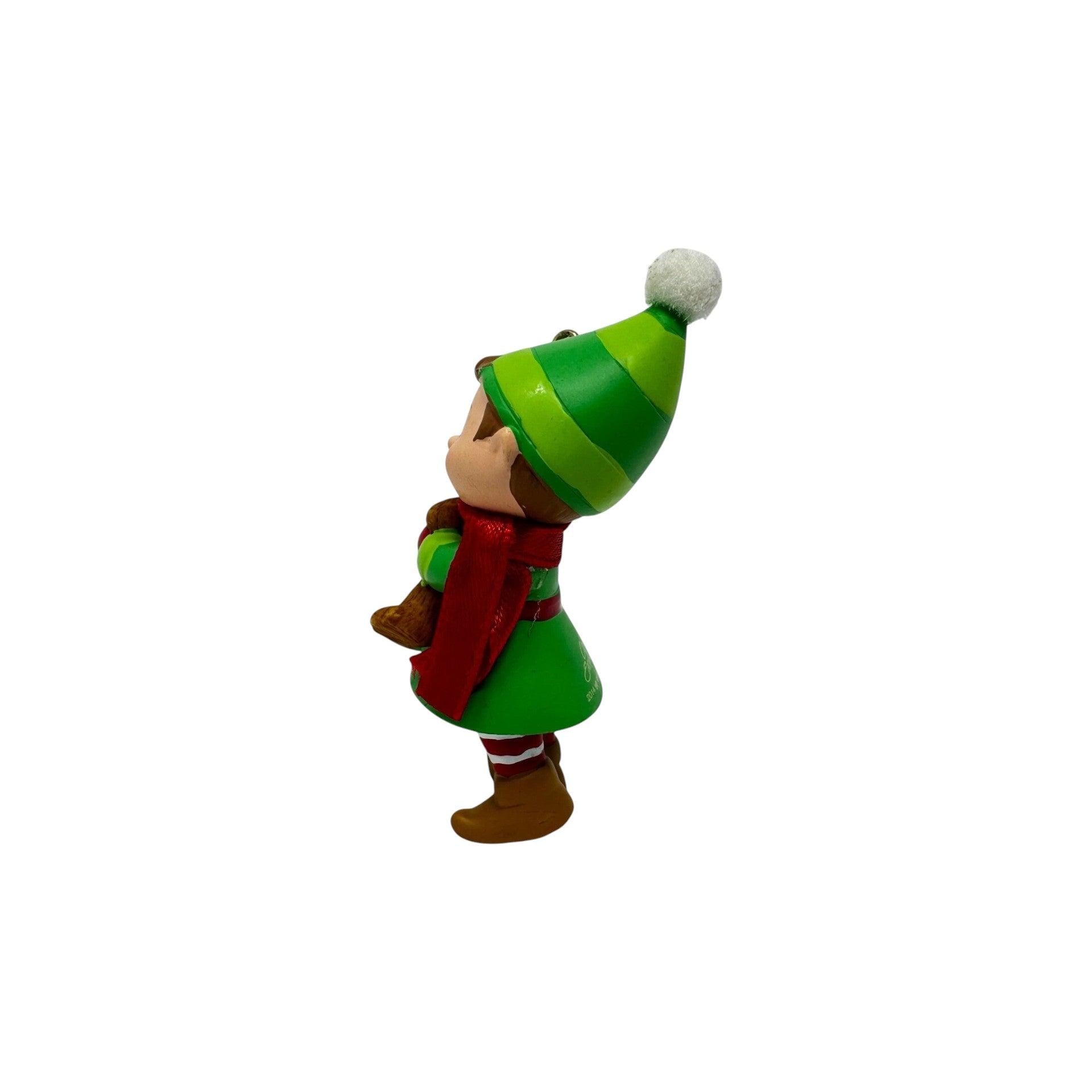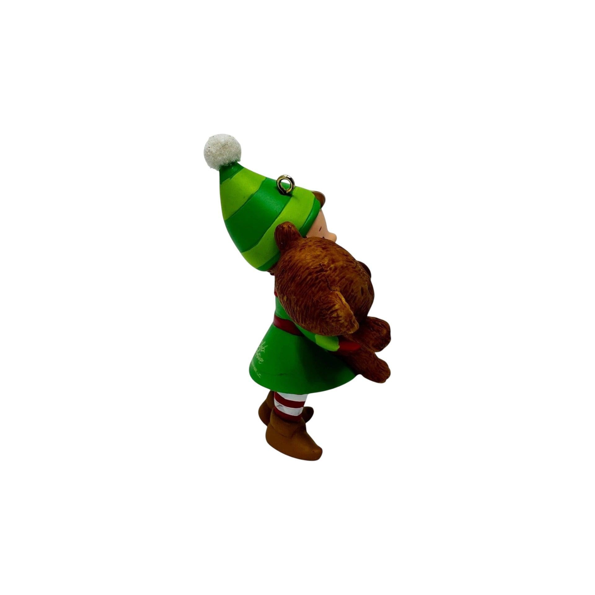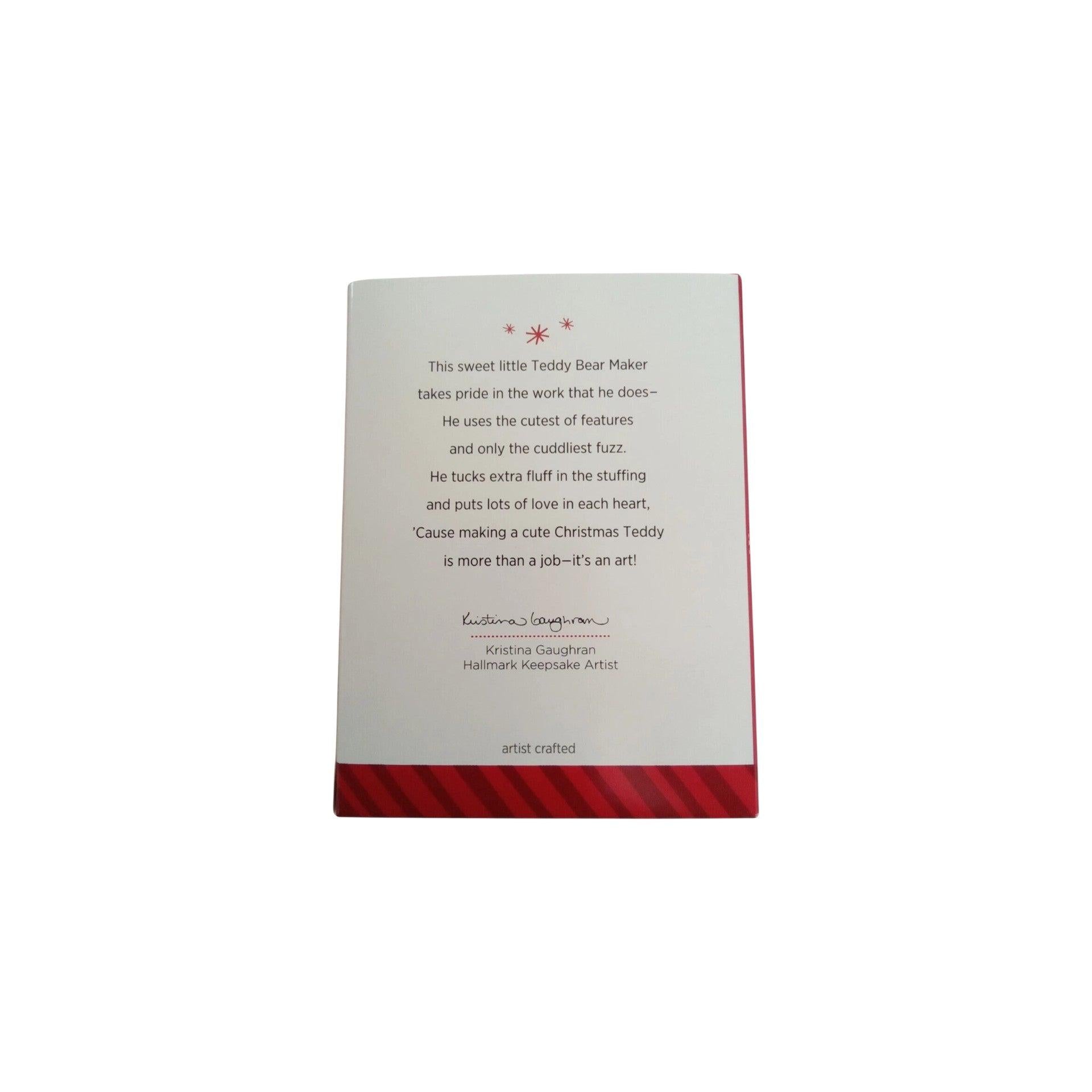 This 2014-dated ornament from Hallmark (QXC5079) is a Club-Exclusive miniature designed by artist Kristina Gaughran. It portrays a cheerful little teddy-bear maker (or elf) dressed in festive attire, placing finishing touches on a teddy bear in his workshop—a heartwarming nod to the magic behind toy making and holiday joy. Its compact size (approx. 2 7/8″ high) makes it ideal for collectors of teddy bear themes, miniatures, and club-exclusive Keepsake ornaments.