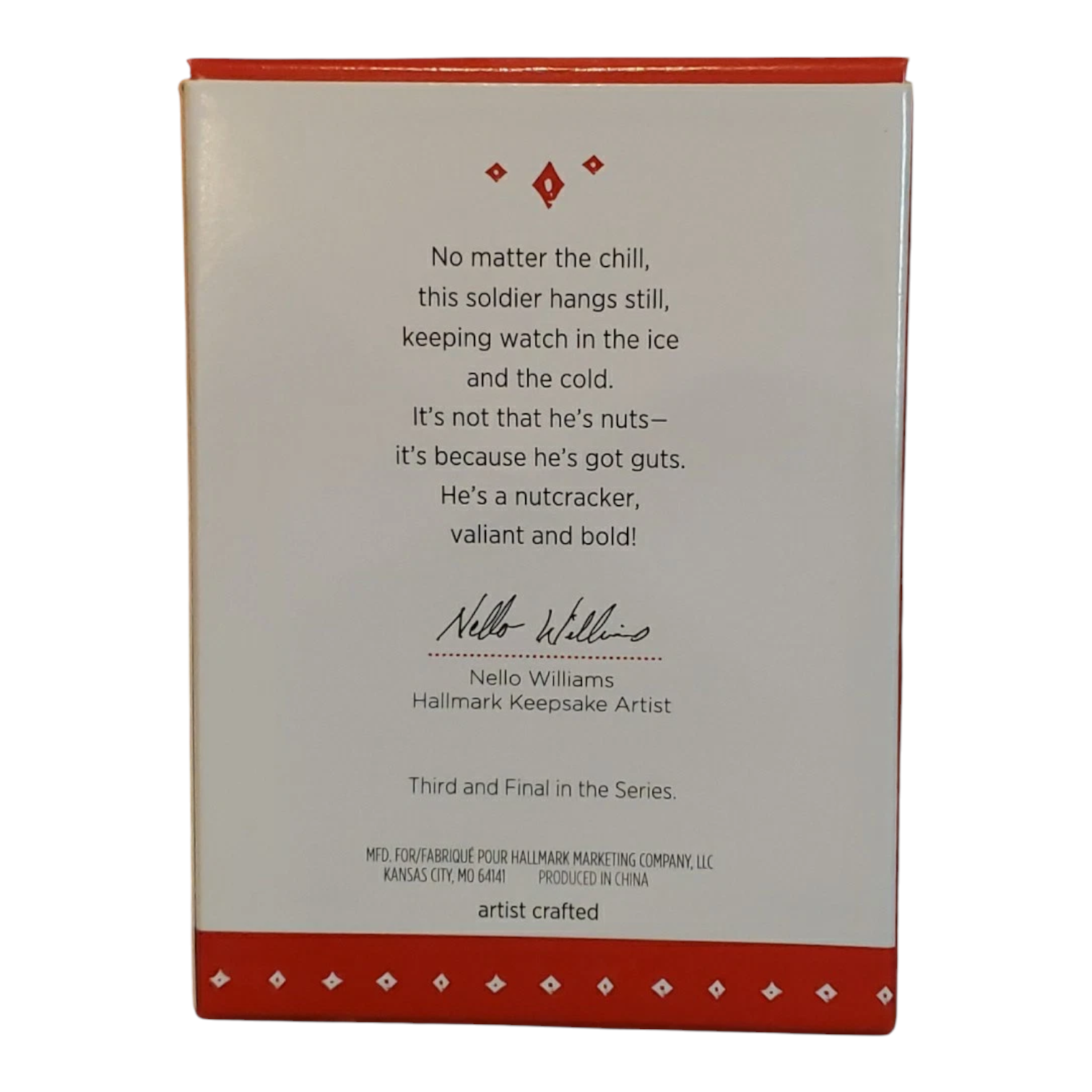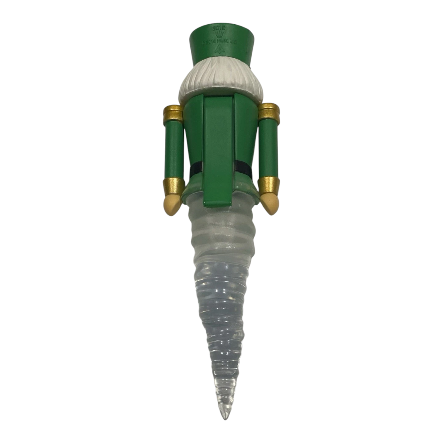 Complete your collection with the 2015 Cool Icicles #3 — Nutcracker, the bold finale of Hallmark’s Cool Icicles series. This ornament showcases a traditional nutcracker figurine—resplendent in green coat, gold trim, and nutcracker features—integrated seamlessly into a textured, clear resin icicle base. Designed by Nello Williams, the piece captures wintry elegance while honoring classic holiday iconography. The ornament measures approximately 4.26″ tall × 1.25″ deep × 1″ wide, and comes packaged in its original box with a hanging loop—no batteries needed. Look closely on the back of the head to find a small “3,” signifying its position in the series.