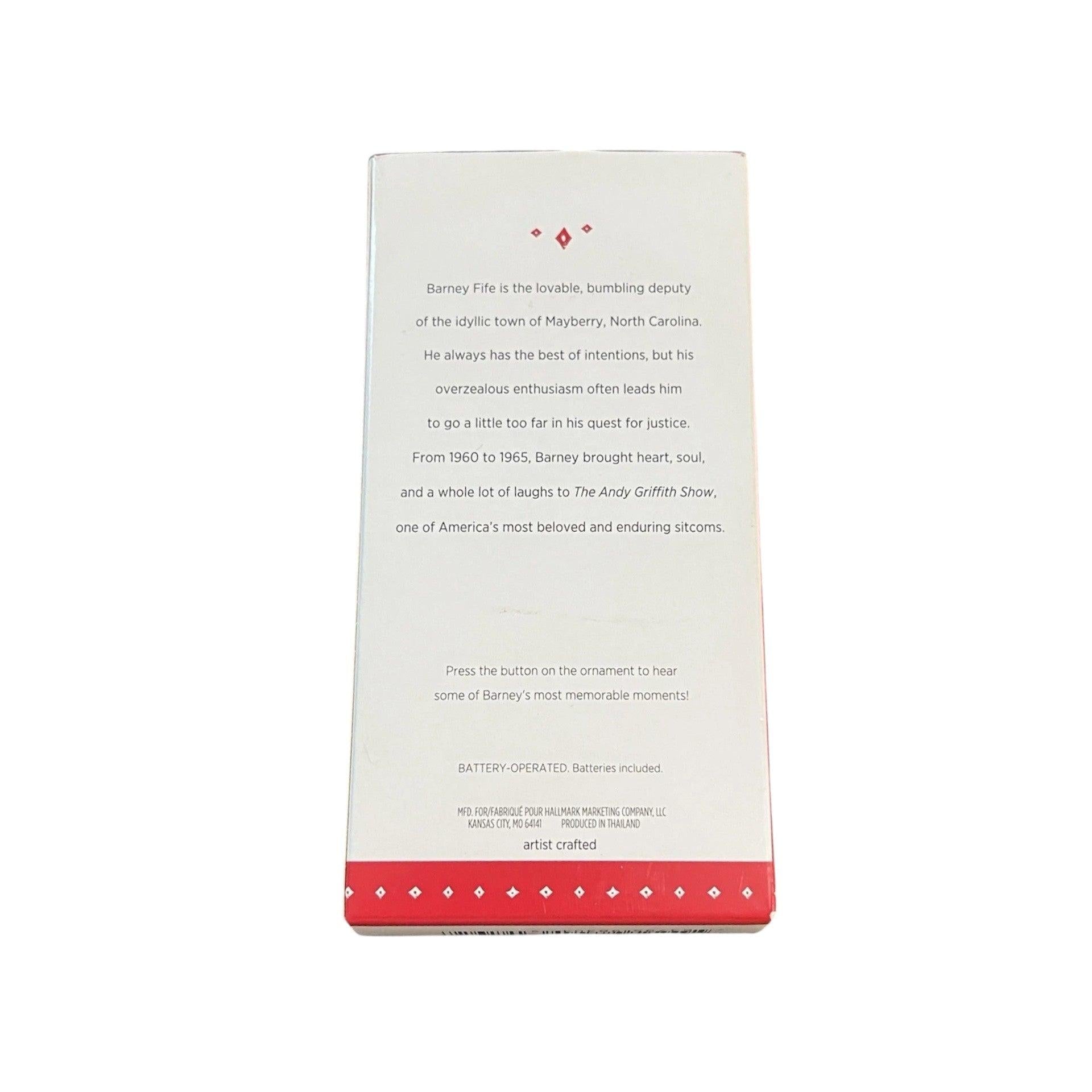 Celebrate the lovable and bumbling deputy of Mayberry with the 2015 "Deputy Barney Fife" Hallmark Keepsake Ornament. This Magic ornament features Barney Fife in his iconic tan uniform, complete with a sheriff's badge and belt. Press the button to hear some of Barney's most memorable lines from The Andy Griffith Show, bringing a touch of nostalgia and humor to your holiday decor.