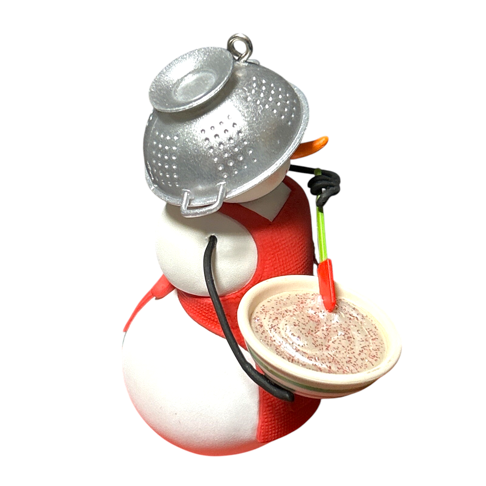 Celebrate the joy of holiday baking with the 2015 "Merry In The Making" Hallmark Keepsake Ornament. This limited-edition piece features a cheerful snowman chef, complete with a red apron, colander hat, and a bowl of festive cookie dough. Designed by artist Terri Steiger, this 3" ornament captures the warmth and whimsy of Christmas kitchen traditions. A perfect gift for bakers and collectors alike.