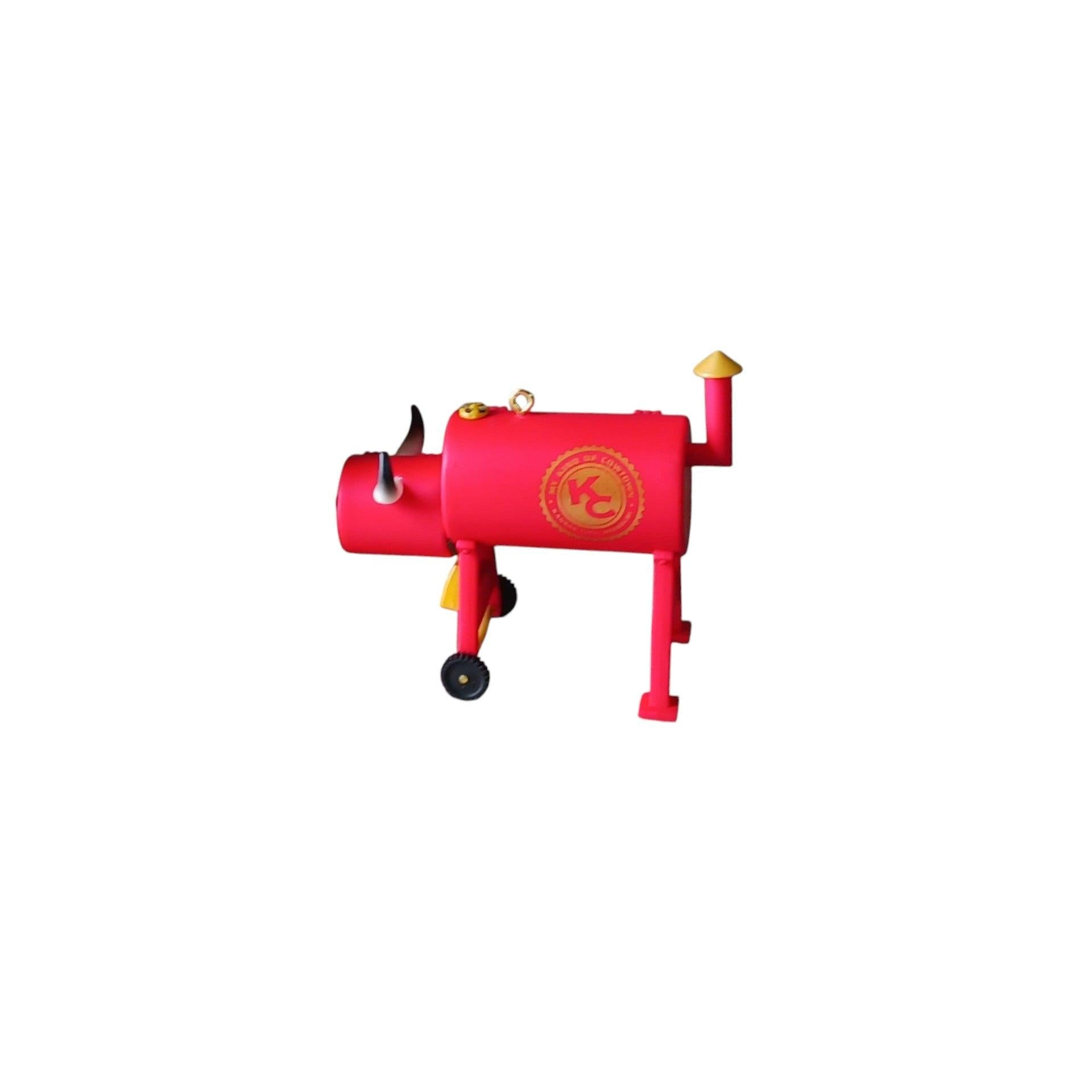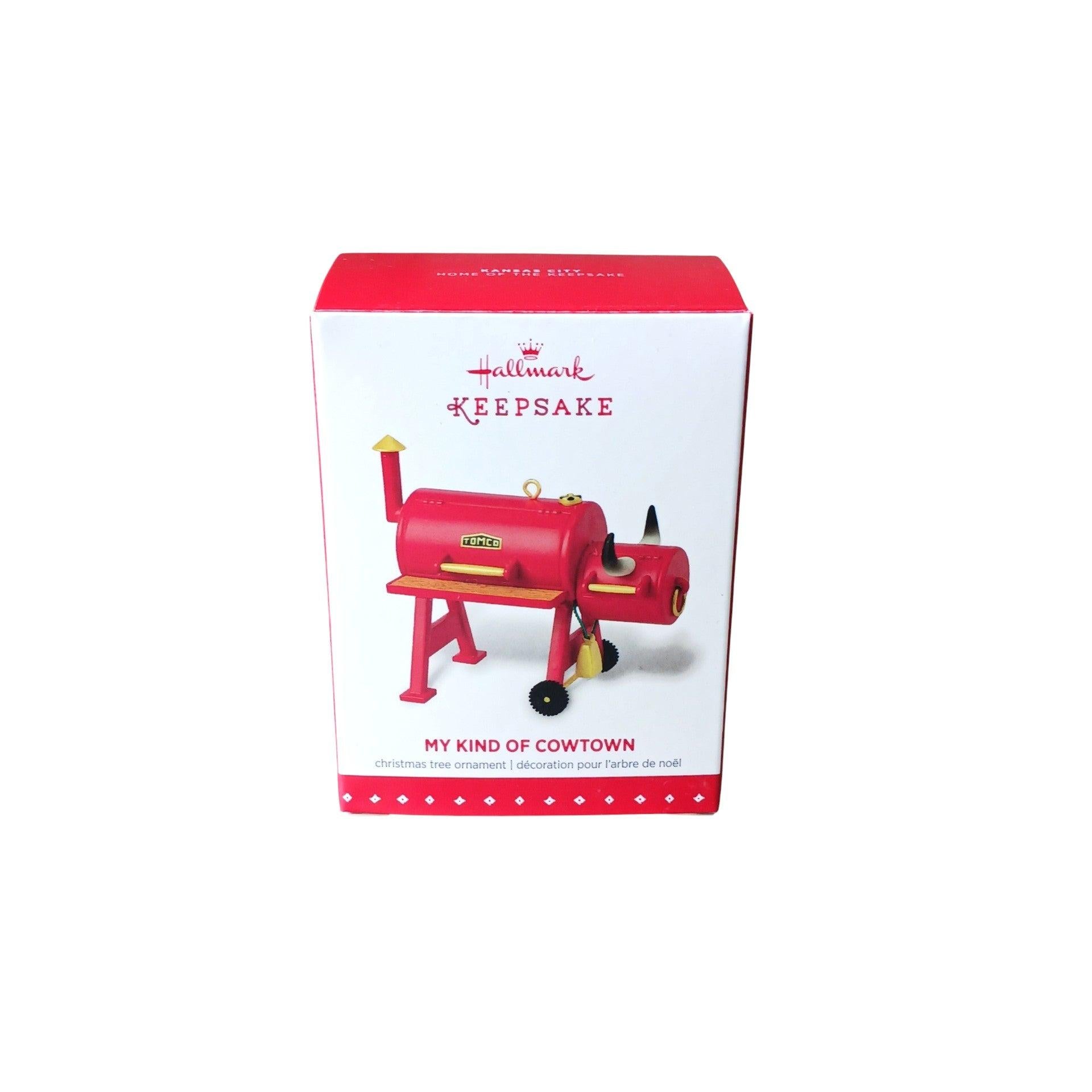 Fire up some Kansas City holiday spirit with My Kind of Cowtown, a KC-exclusive ornament styled like a bright red barbecue smoker/grill complete with wheels and a gold “KC Cowtown” seal on the side—an ode to the city’s legendary BBQ culture. When new, it comes packed in the original Hallmark box for easy gifting and safe storage. This ornament is purely decorative—no batteries, cords, or light strings are required.