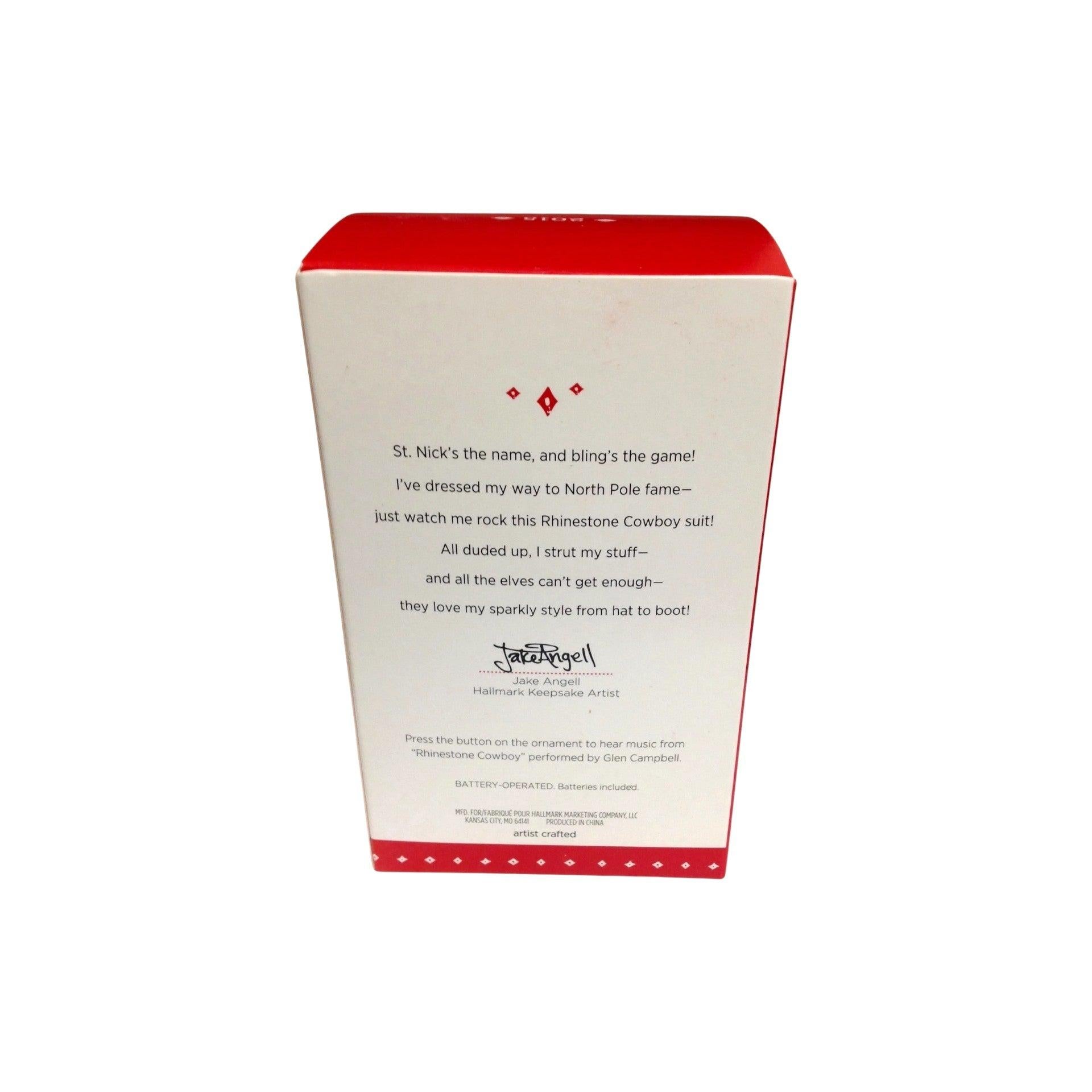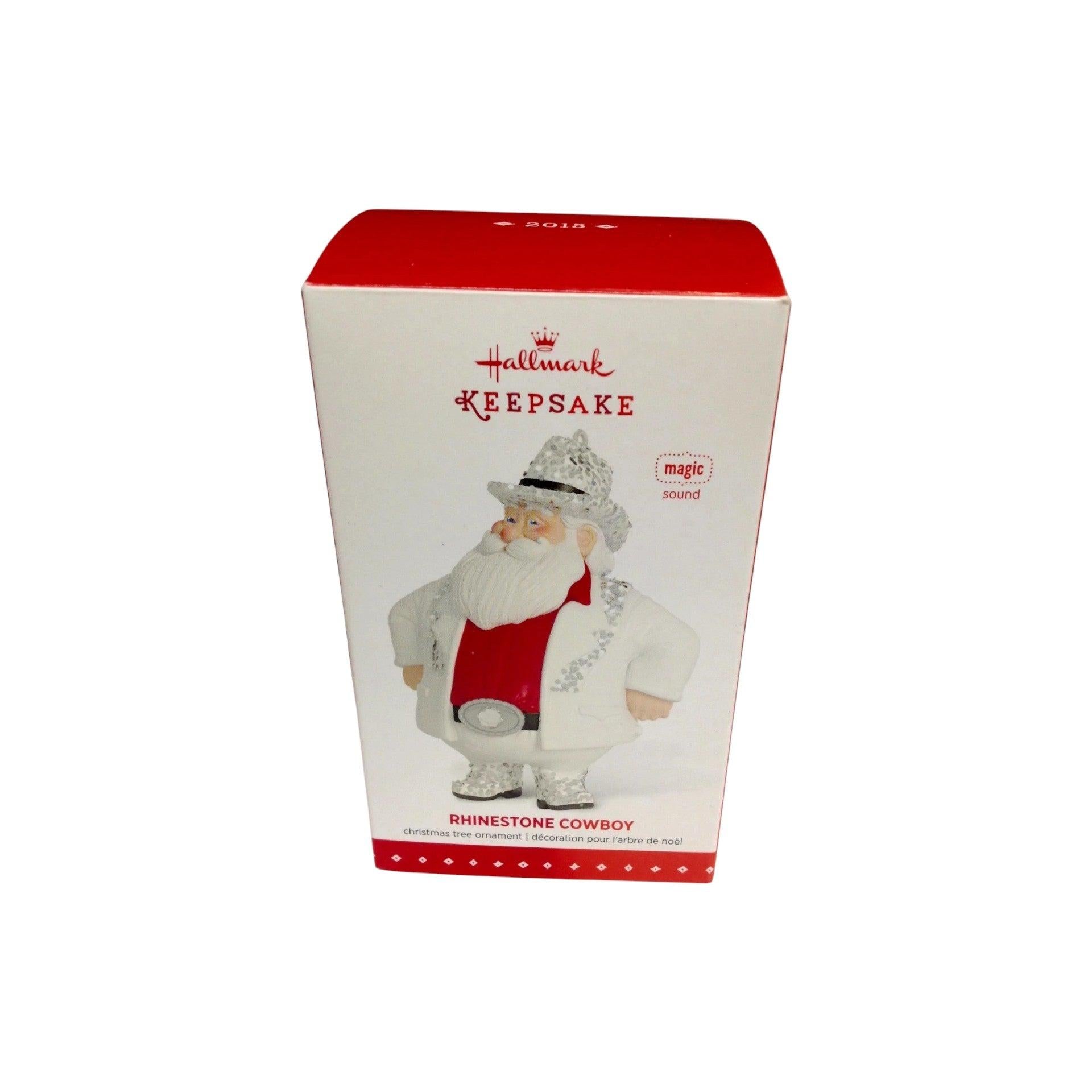 This fun and flashy 2015 Hallmark ornament puts a bold Western spin on Santa Claus with the Rhinestone Cowboy design. Santa is dressed in a cowboy hat and western-style outfit adorned with sparkling rhinestone details, blending country charm with festive glamour. With its playful attitude and eye-catching accents, this ornament is perfect for Santa collectors, Western décor fans, or anyone who loves a little sparkle with their holiday cheer. The ornament includes the Rhinestone Cowboy Santa ornament and typically the original Hallmark Keepsake box when available. Fully decorative—no lights, cords, or batteries required.