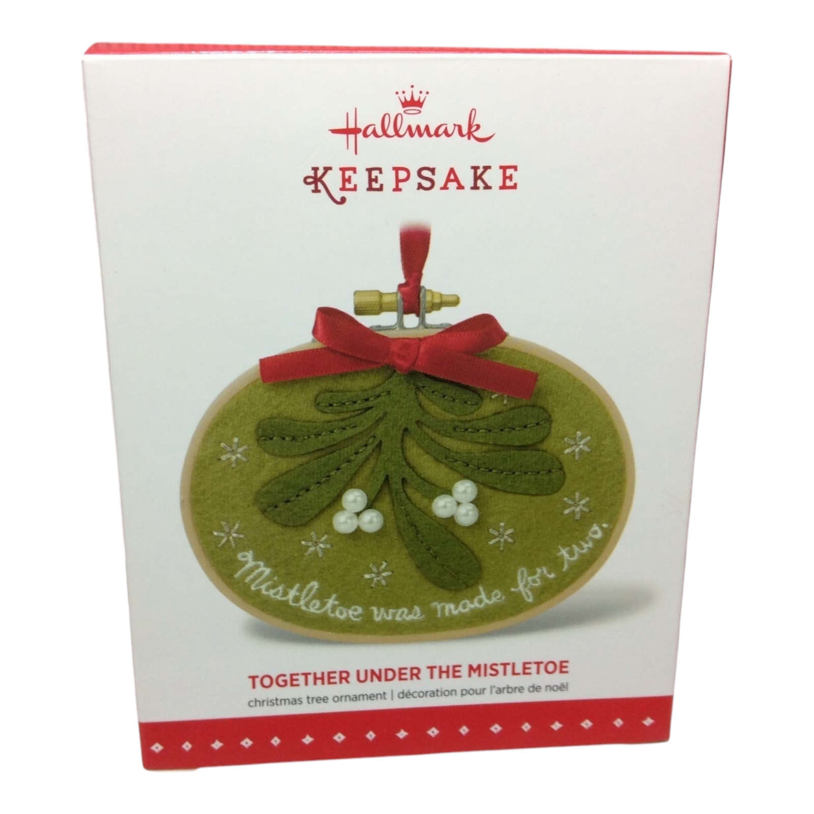 This collectible ornament features a charming sprig of mistletoe crafted of felt/fabric, engraved (or printed) with the sentiment: “Mistletoe was made for two.” It captures the classic holiday tradition of togetherness and the romantic notion of a kiss beneath the mistletoe. The piece—designed by artist Ruth Donikowski and released in 2015 as a Gold Crown exclusive—makes a meaningful gift for couples, newlyweds or anyone celebrating holiday love. It’s sized at approximately 4¼″ W × 5⅝″ H × ⅜″ D (≈ 10.8 × 14.3 × 1.0 cm).