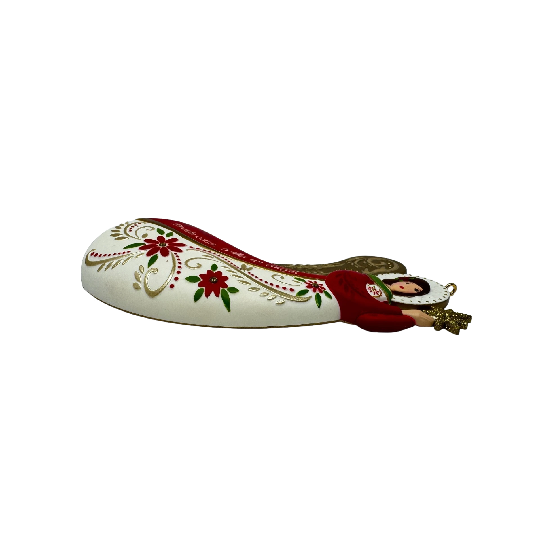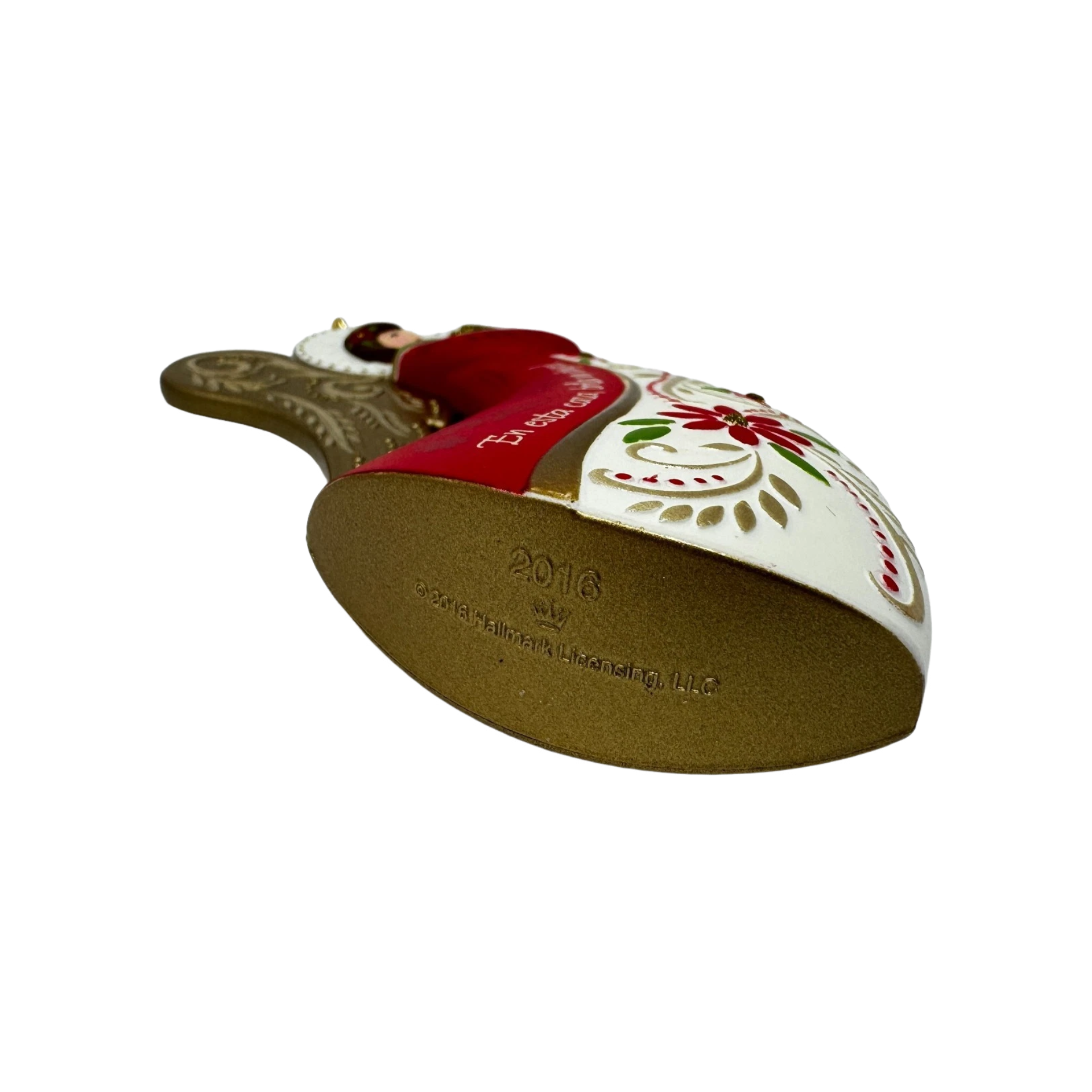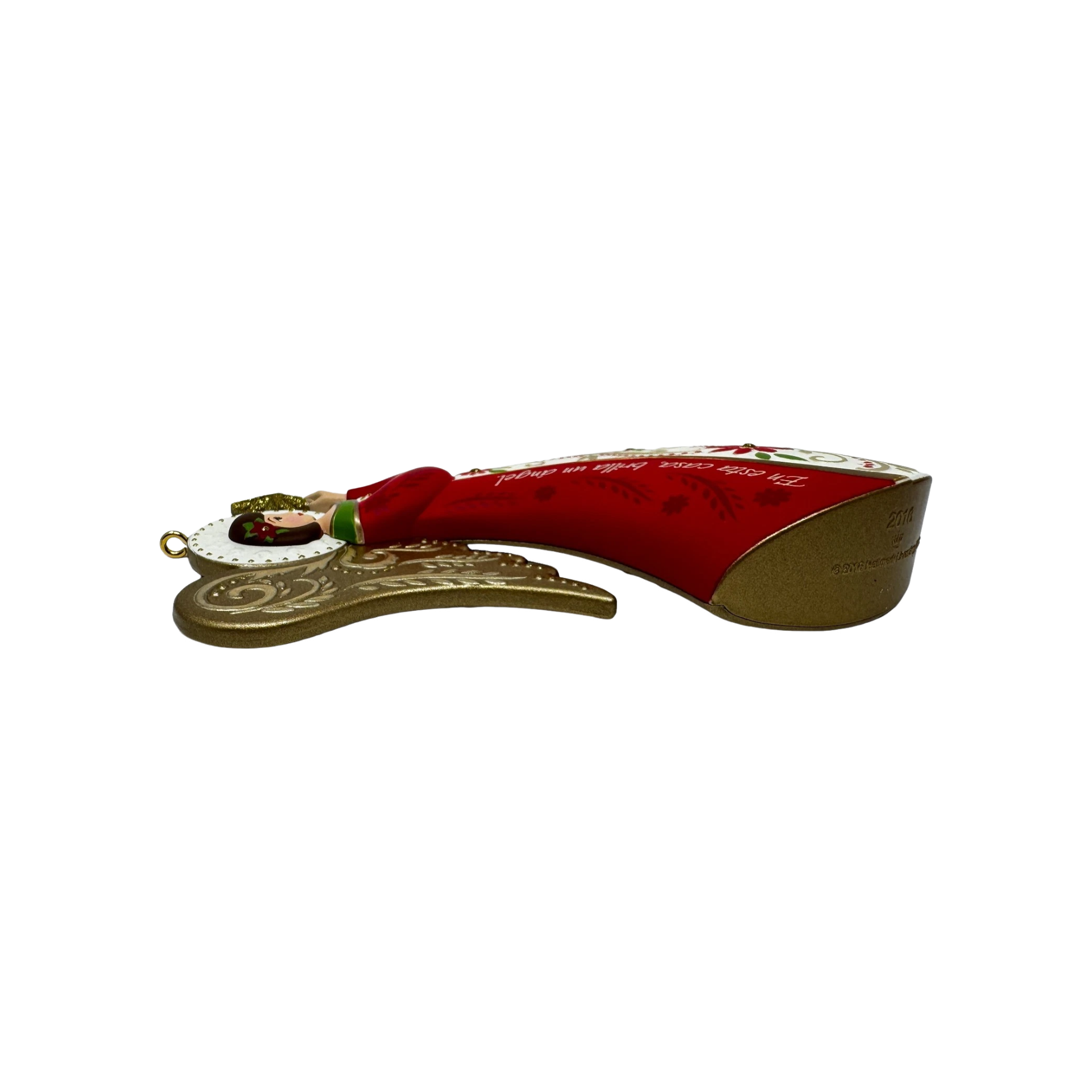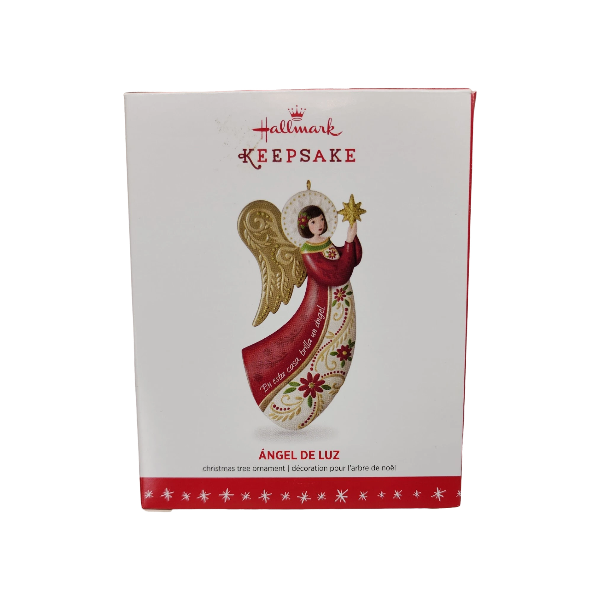 The 2016 Angel De Luz Hallmark ornament is a beautifully sculpted angel dressed in flowing robes with delicate filigree-style wings and soft metallic accents. Her serene expression and hands gently raised in blessing symbolize peace, hope, and the light of the season. This elegant piece often appeals to collectors of angel ornaments and spiritual décor. It typically comes packaged in its original Hallmark Keepsake box and does not require any batteries, cords, or accessories.