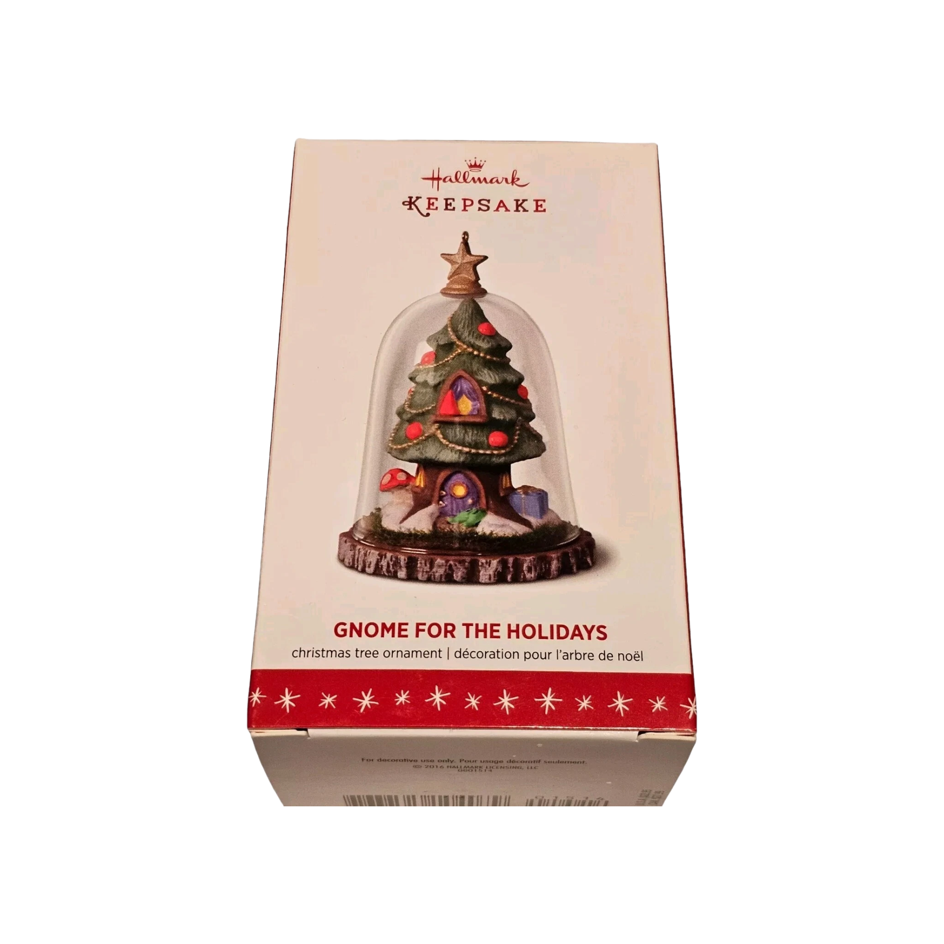 This 2016 ornament is a whimsical “terrarium-style” keepsake from the Gnome-for-Christmas line. The design shows a tiny gnome home nestled at the base of a miniature tree inside a clear dome — complete with little details like presents and a toadstool by the door, giving a cozy, storybook vibe that evokes holiday magic and woodland charm. The ornament comes in its original Hallmark box (Gold Crown Exclusive), ready for hanging or display on a tree. It’s a purely decorative piece — there are no lights, sounds, or moving parts, and it doesn’t require any batteries, cords, or light strings.