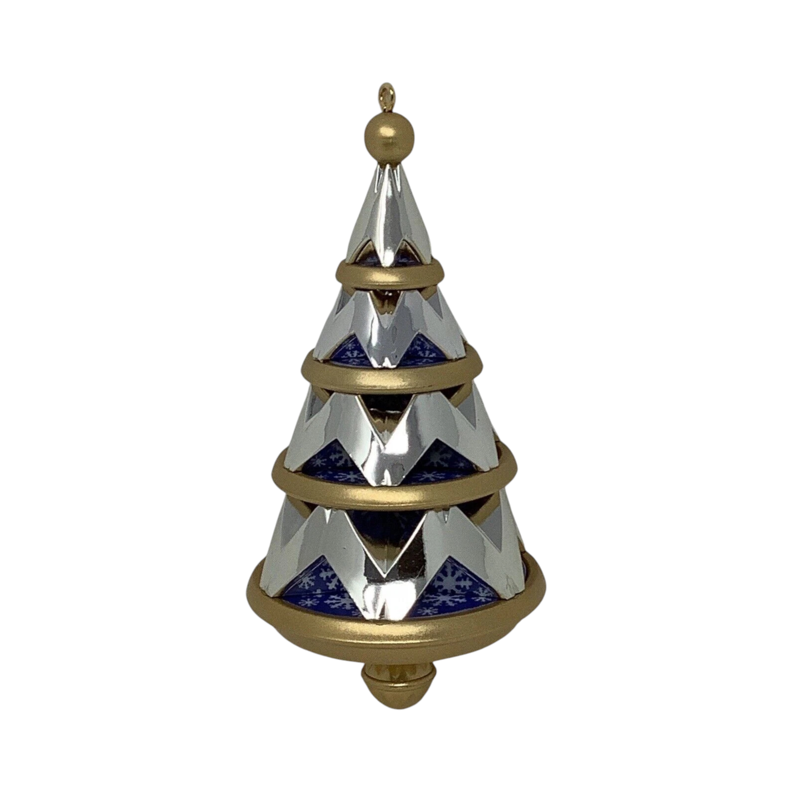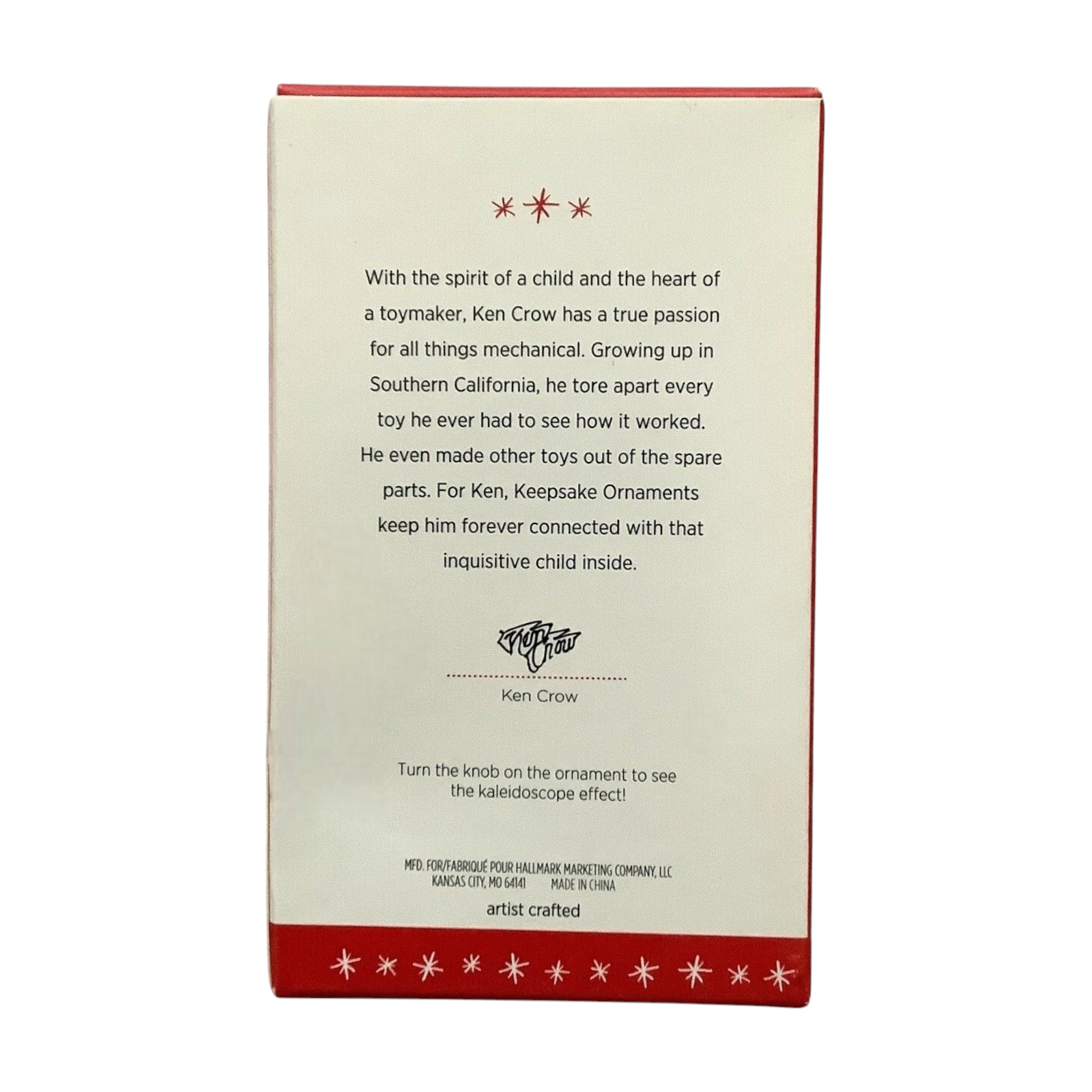 Add enchanting motion and festive flair to your tree with the 2016 Kaleidoscope Tree ornament, a Hallmark Gold Crown exclusive. Crafted from painted resin, its multi‑layered tree opens at the bottom to reveal a hidden kaleidoscope chamber. Simply turn the gold-tipped knob to watch snowflake patterns swirl and dance within. This delightful keepsake, designed by Ken Crow, arrives Mint‑in‑Box with a clamshell and hang tag—no batteries or cords needed.