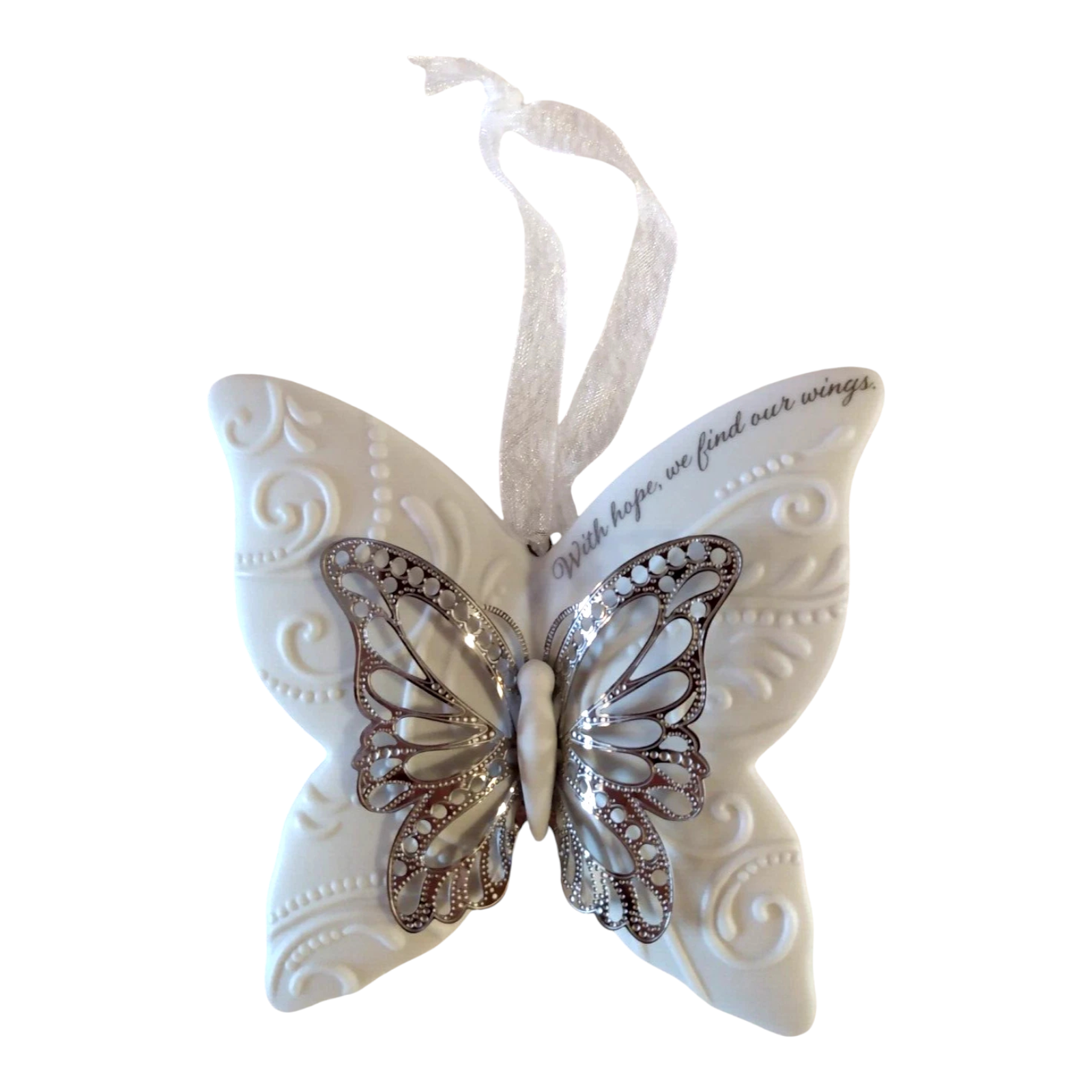 Grace your holiday tree with ethereal beauty using this refined wings ornament—an elegant, off-white cast of angel wings carrying the uplifting inscription “On wings of hope, our spirits soar.” Designed by Robert Hurlburt and Julie Forsyth, this collectible arrives in its original box and hangs effortlessly—no power or batteries needed. A serene focal point to inspire hope each festive season.