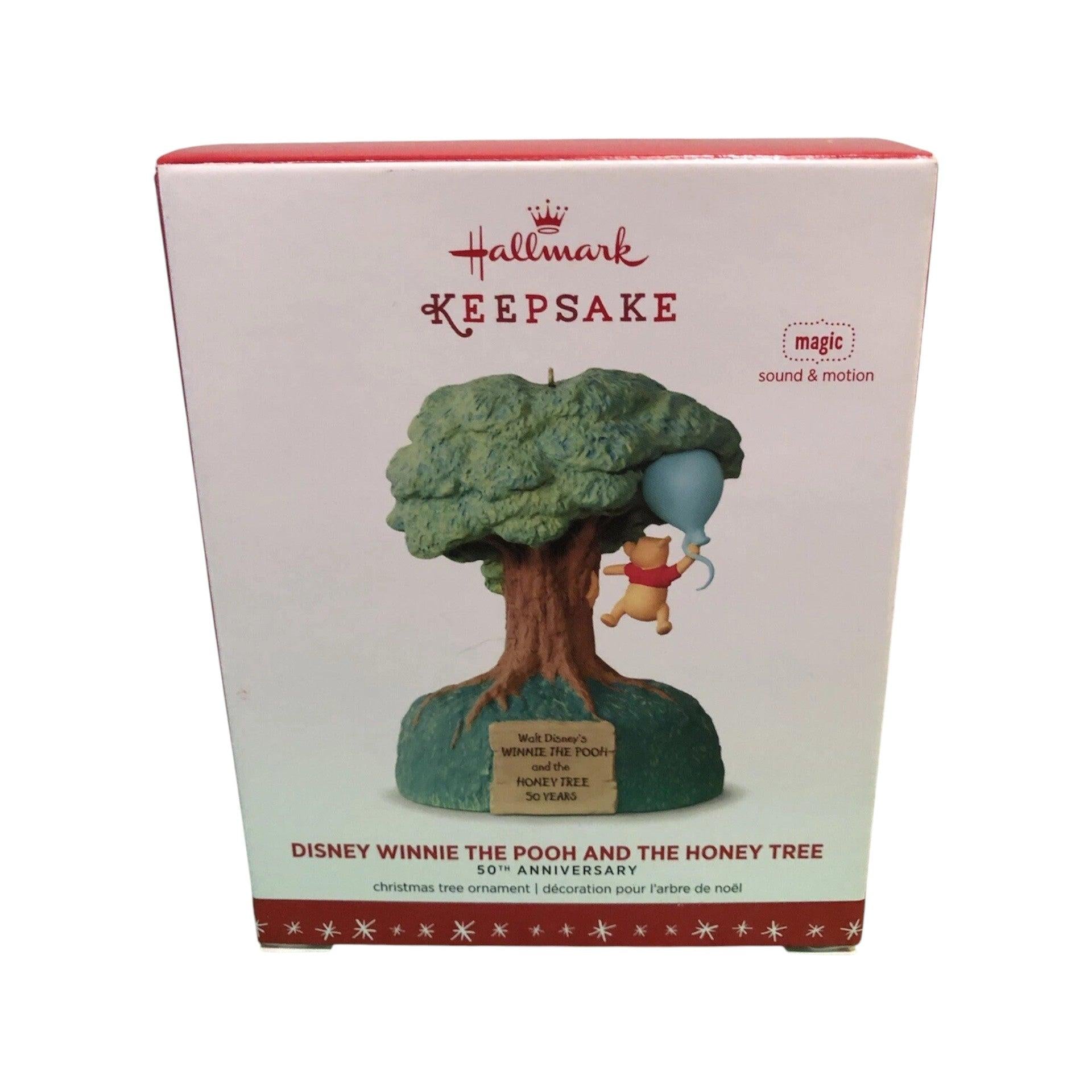 Celebrate a milestone with 2016 Disney Winnie the Pooh and The Honey Tree, a Hallmark Gold Crown exclusive honoring the 50th anniversary of the classic Pooh short. This enchanting Magic / Sound & Motion ornament recalls a memorable scene: Pooh hangs upside down from his beloved honey tree, and when you press the button, he gently swings while the musical tune “Little Black Rain Cloud” plays.