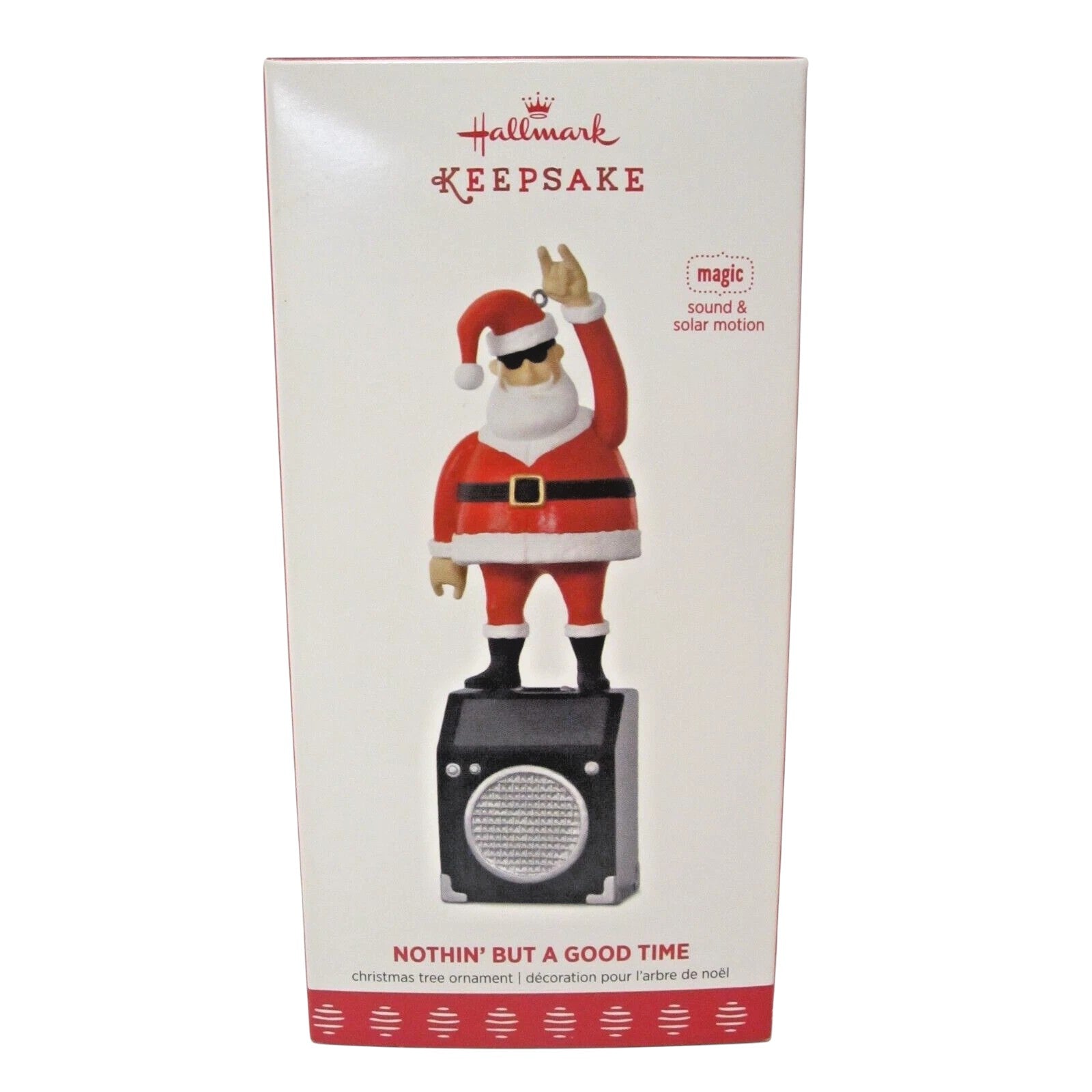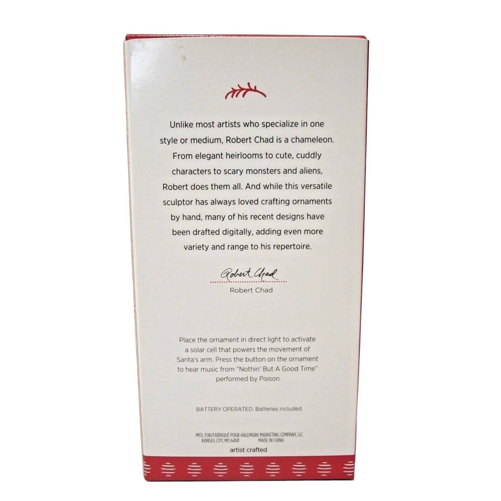 Rock your holiday spirit with the lively 2017 Nothin' But Good Time ornament from Hallmark’s Magic series. Featuring Santa with a guitar and mic, his arm rocks to life powered by a solar cell, while pressing a button blasts Poison’s “Nothin' But a Good Time.” This collectible arrives mint in its original Keepsake box, with hang tag, clamshell, and batteries included—no cords or adapters needed. Just place in direct light, press play, and let the holiday concert begin!