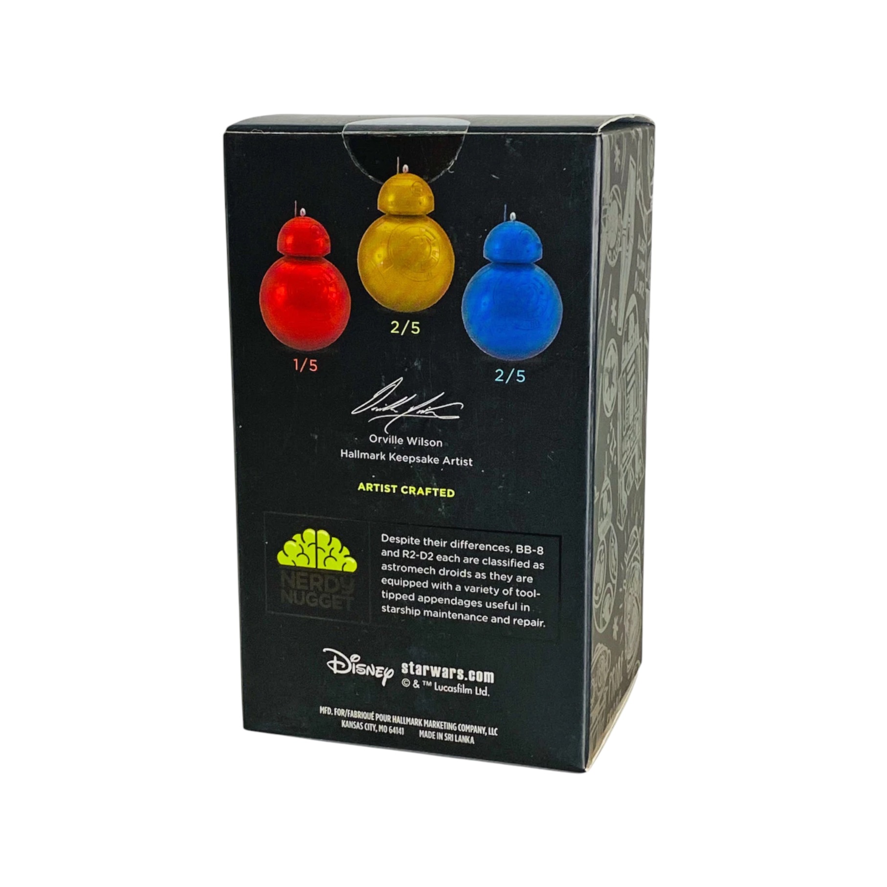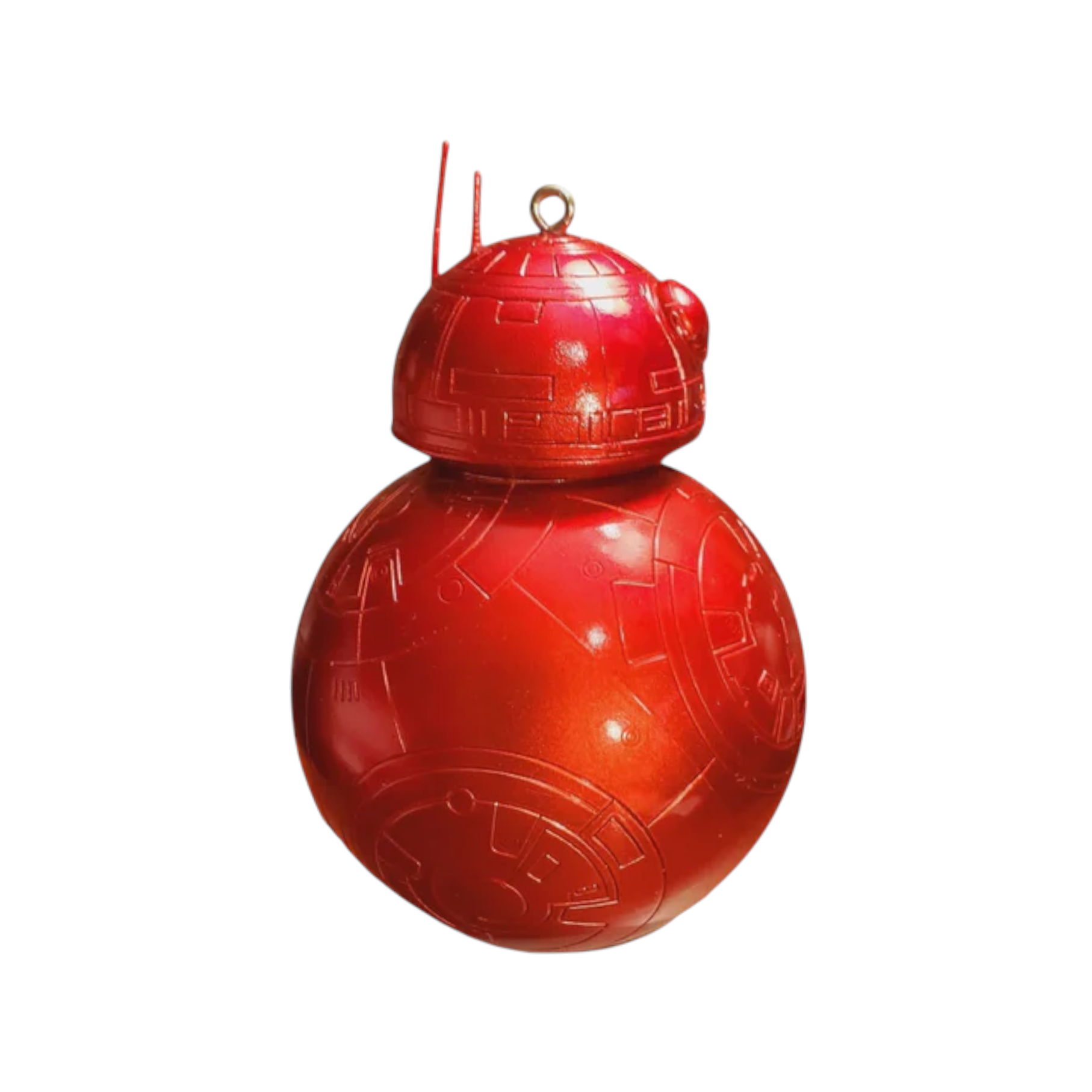 The 2018 BB-8 Mystery Box Hallmark ornament features the beloved spherical droid from Star Wars, whimsically packaged as though he’s popping out of a festive gift box. The ornament captures BB-8’s expressive design with detailed paneling, orange-and-white coloration, and a playful holiday twist. Perfect for Star Wars fans and sci-fi collectors, this ornament typically comes with its original Hallmark Keepsake box and requires no batteries, cords, or accessories.