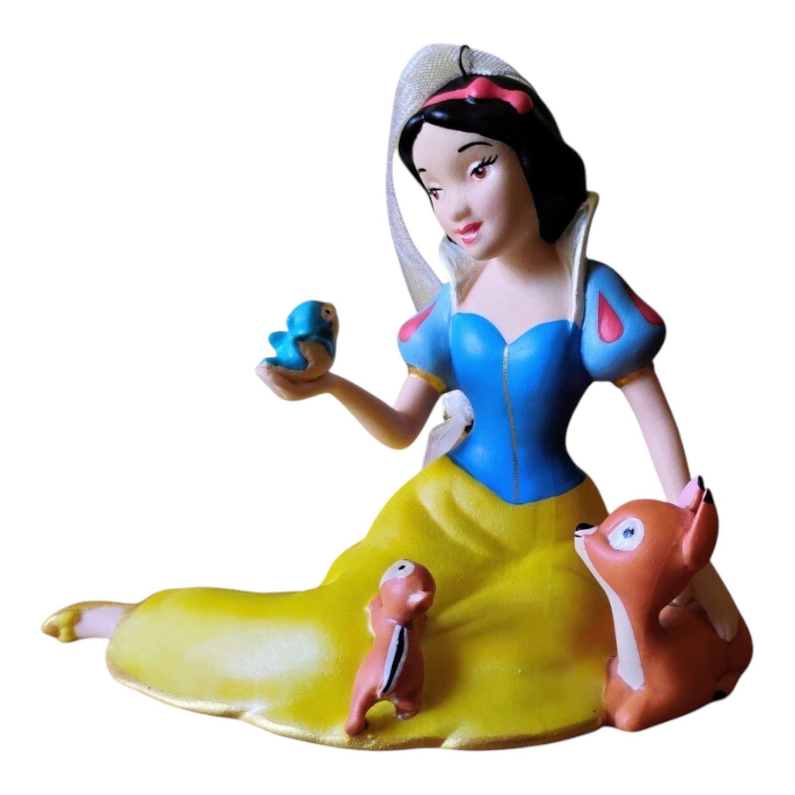 Celebrate the timeless magic of Disney’s Snow White and the Seven Dwarfs with this premium 2018 keepsake ornament released by Hallmark for the 80th anniversary of the film. The design features Snow White seated amidst forest animals—a bluebird in her hand, a fawn by her side, and a curious chipmunk scurrying across her skirt—capturing the gentle, storybook charm of the original animation. Crafted in porcelain and finished with delicate detailing, it’s part decorative piece, part nostalgic tribute, and ideal for Disney-fans, holiday décor lovers or collectors of licensed character ornaments.