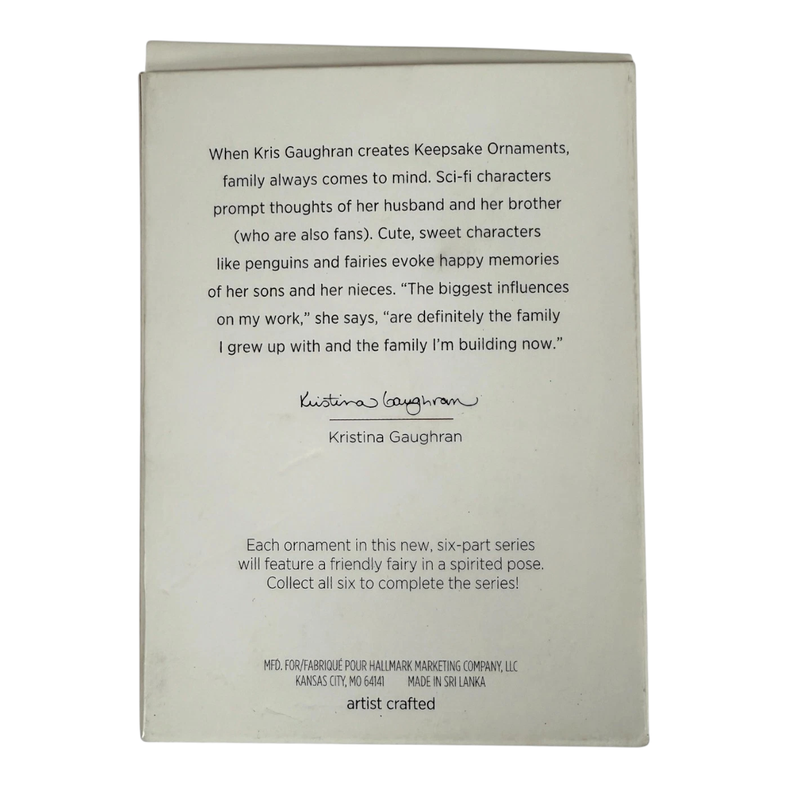 Invite a little magic and good fortune into your décor with the 2018 Good Luck Fairy, model QHA9137, from Hallmark’s Friendly Fairies series. This charming ornament features a fairy with auburn braided hair, sitting happily among sparkling shamrocks with translucent glittered wings. The vibrant green clover base and whimsical pose bring a cheerful, luck-filled flair to any tree or fairy-themed collection.