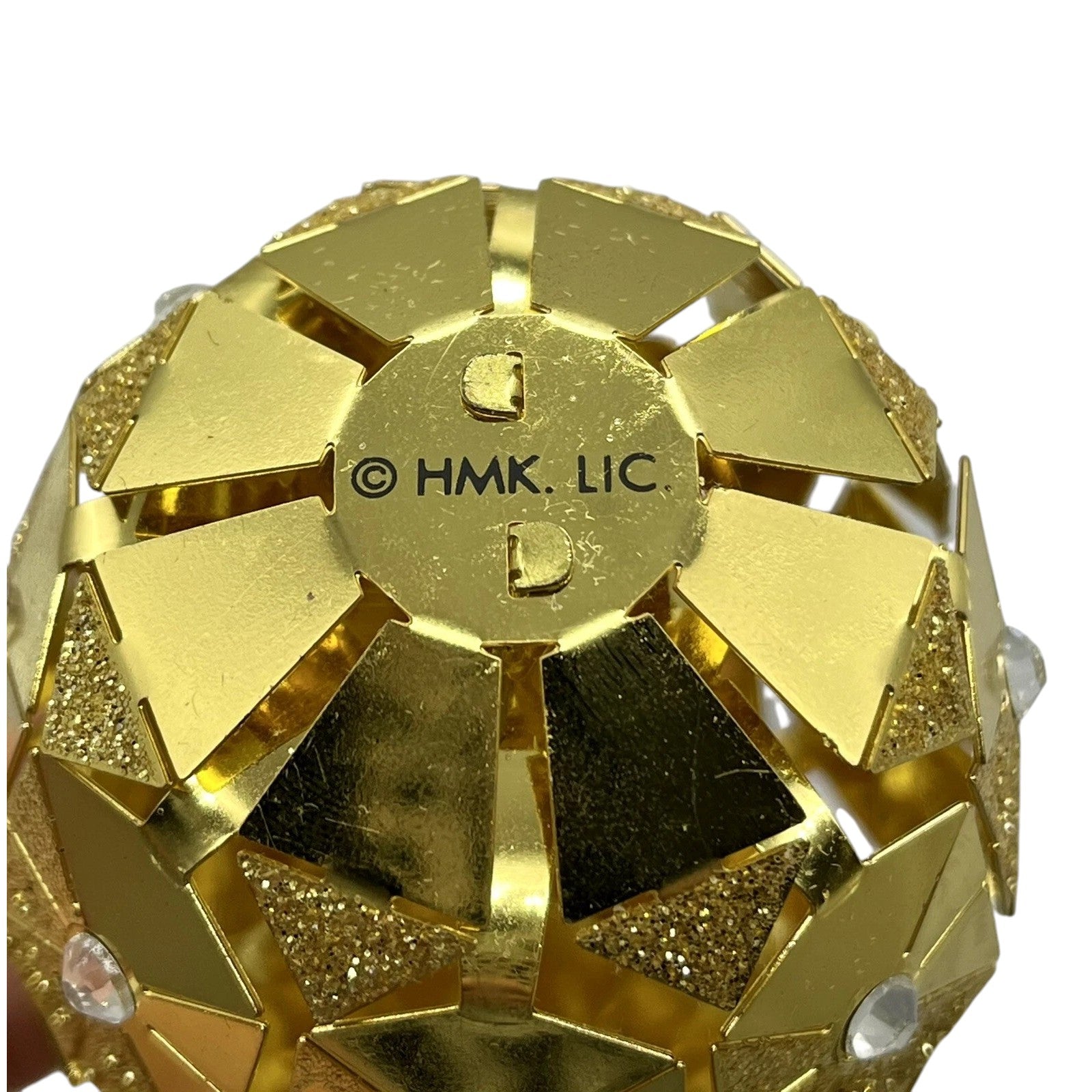 Materials: Metal with glitter inlay, mirrored facets, and rhinestone accents