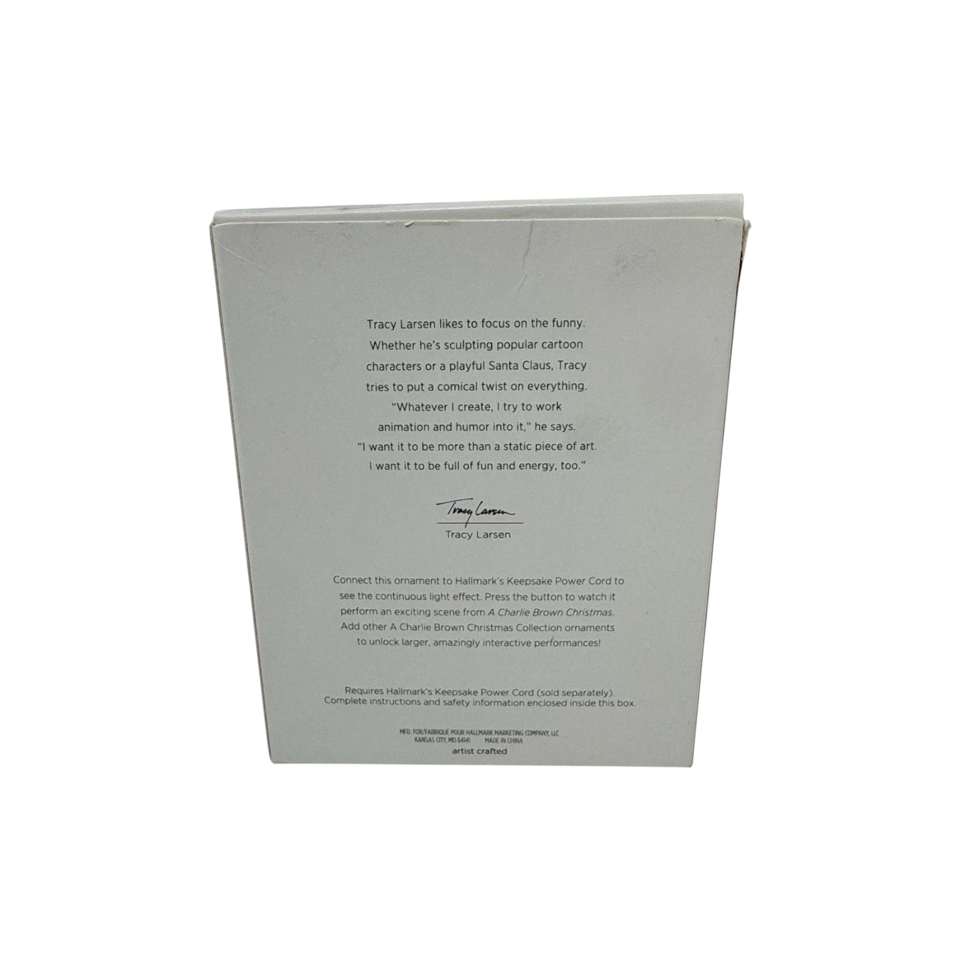 Celebrate the heartwarming tale from A Charlie Brown Christmas with this Storyteller ornament starring Snoopy. Standing beside his festive, decorated doghouse with a large bone in his red bowl, Snoopy comes to life with interactive light and sound. Connect the Keepsake Power Cord (sold separately), press the button, and watch continuous lighting coupled with a memorable audio clip from the classic 1965 special. Arrives mint-in-box with memory tag and original holiday packaging—no batteries needed, just add the cord!