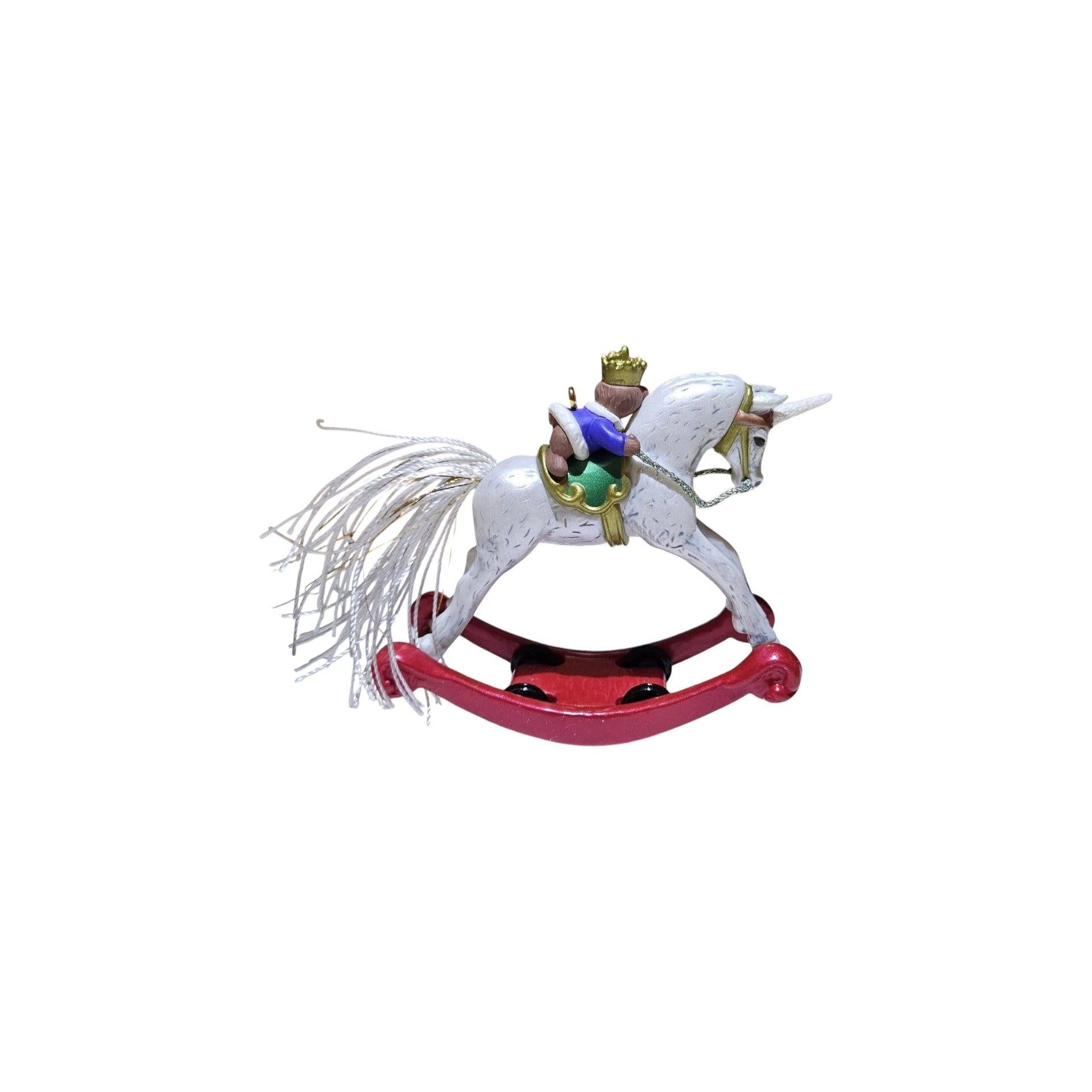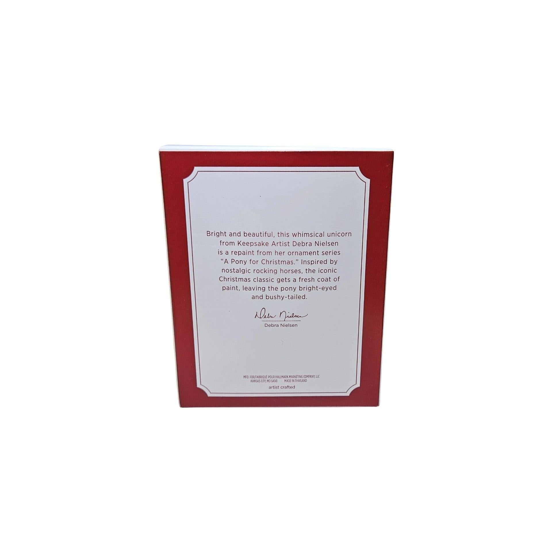 This charming Hallmark ornament from the A Pony for Christmas series features a sweet pony beautifully detailed with festive holiday accents, capturing the magic and wonder of a child’s Christmas wish. With soft colors and gentle expression, this ornament evokes warmth, innocence, and holiday joy, making it a delightful addition to family Christmas trees and a meaningful gift for animal lovers. The ornament comes packaged in its original Hallmark Keepsake box and includes the original hanging string and tag. This ornament is static and does not require batteries, cords, motion, sound, or light strings.