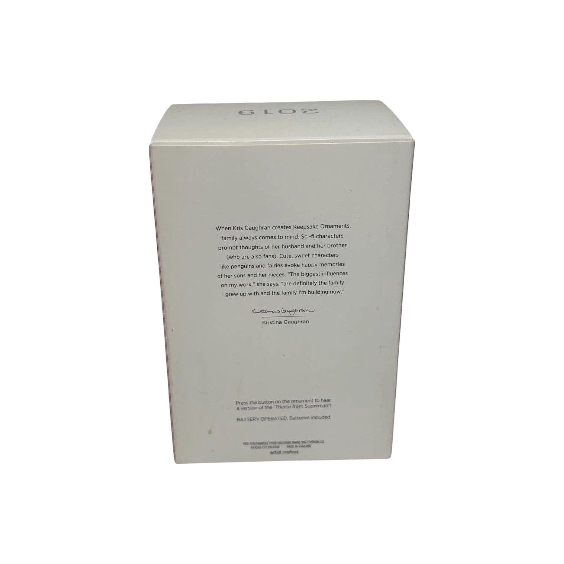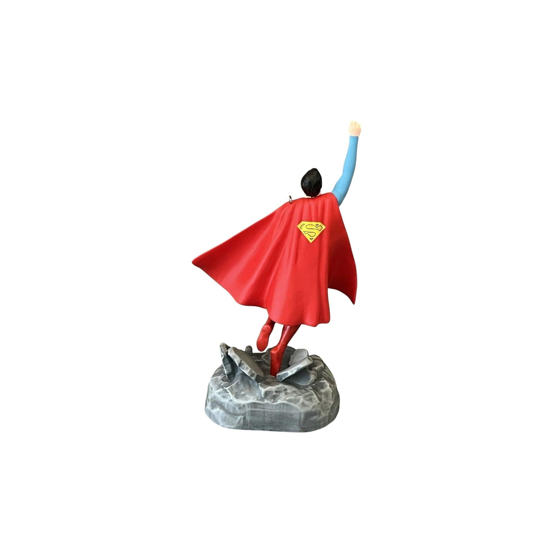 This striking Hallmark ornament pays tribute to Christopher Reeve’s iconic portrayal of Superman, capturing the Man of Steel in his classic blue suit with red cape and heroic stance inspired by the legendary films. Sculpted with detailed facial features and costume accents, this ornament celebrates one of the most beloved superheroes in cinema history. It is a must-have for DC Comics fans and Superman collectors alike. The ornament comes packaged in its original Hallmark Keepsake box with hang tag. It does not require batteries, cords, or light strings for display.