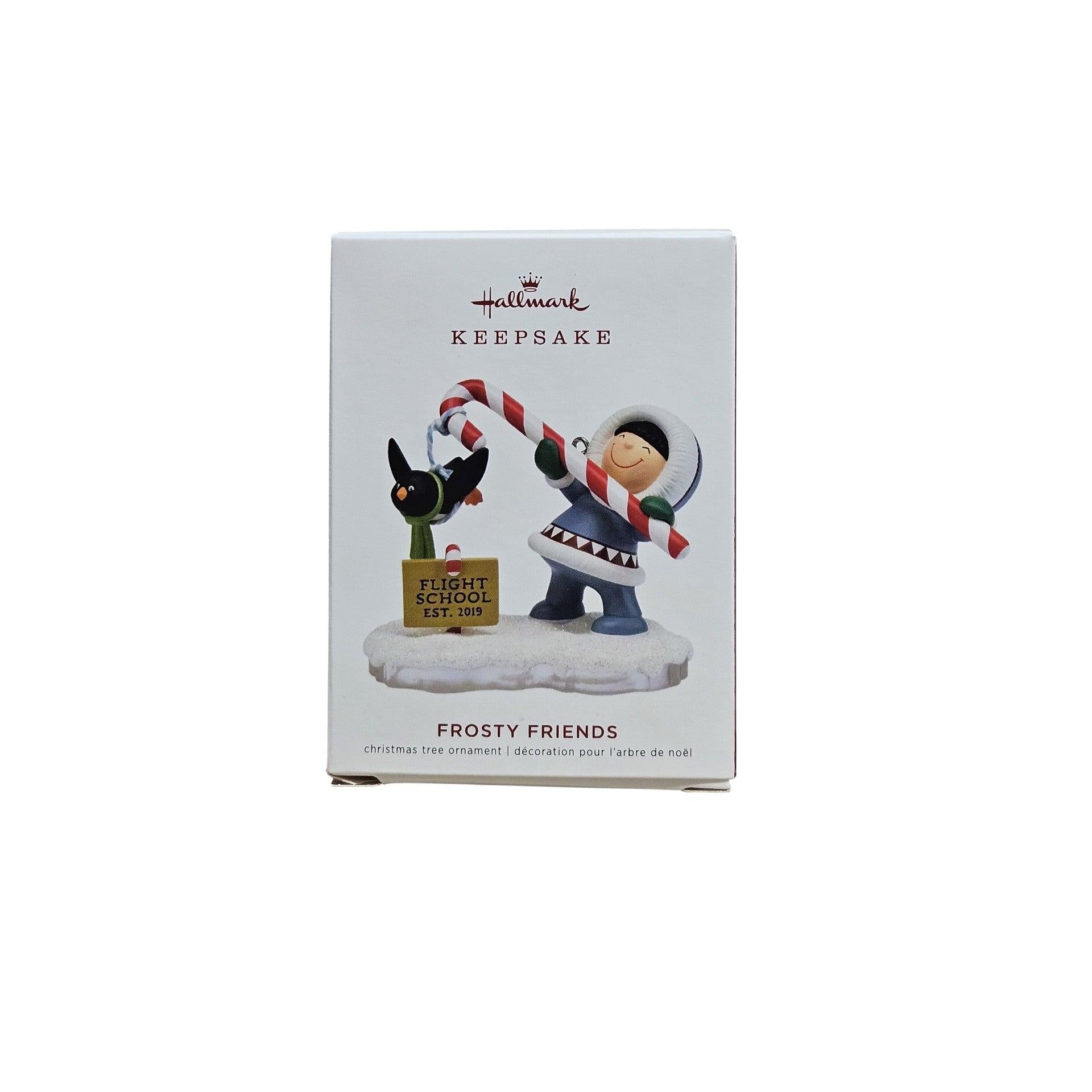 The 2019 Frosty Friends ornament continues Hallmark’s beloved Frosty Friends series, featuring an adorable penguin and polar bear duo bundled up for winter fun. Crafted in detailed resin with soft winter colors and expressive faces, this ornament captures the playful spirit that has made the series a collector favorite since 1980. The ornament comes packaged in its original Hallmark box with dated hang tag and requires no batteries, cords, or light strings, making it easy to display year after year on any Christmas tree.