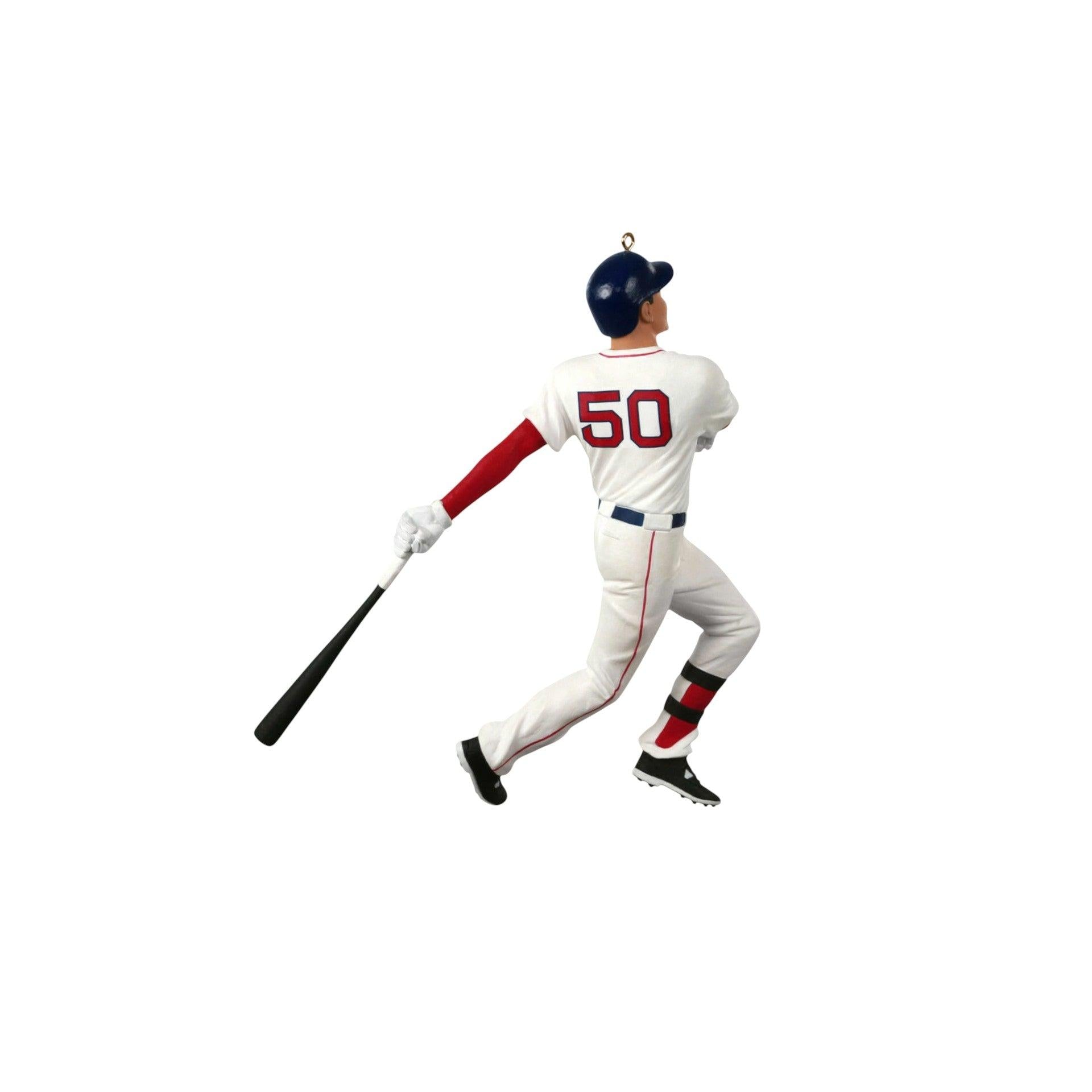 Celebrate one of the most remarkable seasons in baseball history with the 2019 Mookie Betts, Boston Red Sox ornament—a “complement” piece to Hallmark’s beloved At the Ballpark series. This ornament captures Betts in dynamic batting form, complete with authentic Red Sox detailing. Crafted with precision, it comes in the Collector’s Series box and includes a Holiday Memory card, ready to hang on your tree with no batteries or cords required.