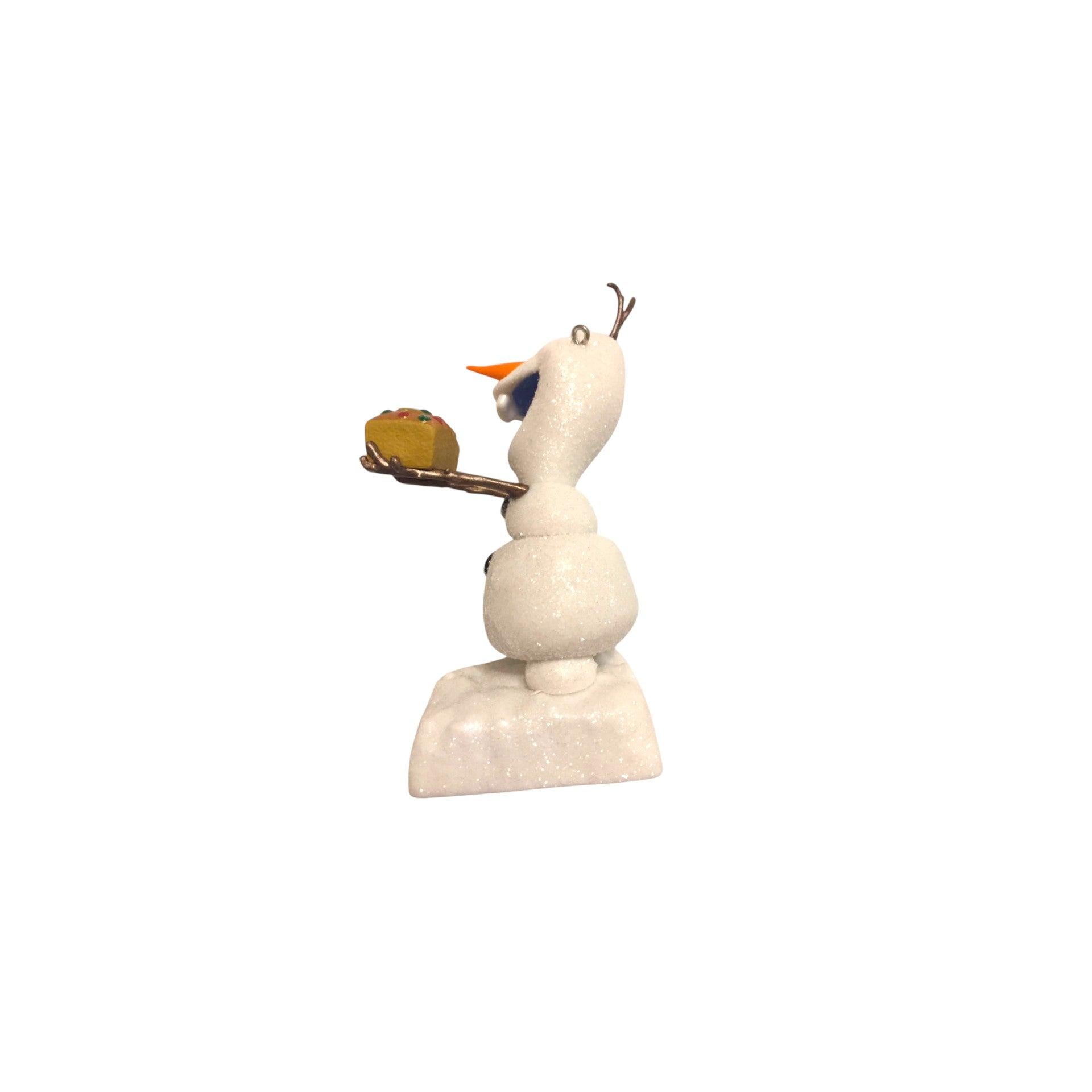 Capture the festive spirit with 2019 That Time of Year, a playful Magic ornament inspired by Olaf’s Frozen Adventure. Olaf, freshly sprinkled with glitter to mimic snow, carries his very first fruitcake—his face lighting up with holiday delight. Press the button and hear a delightful sound clip from the short film—adding a heartwarming burst of cheer to your tree. Crafted from lead-free plastic and dated 2019, this keepsake arrives in its original gift box, complete with batteries included—ready for joyful holiday display.