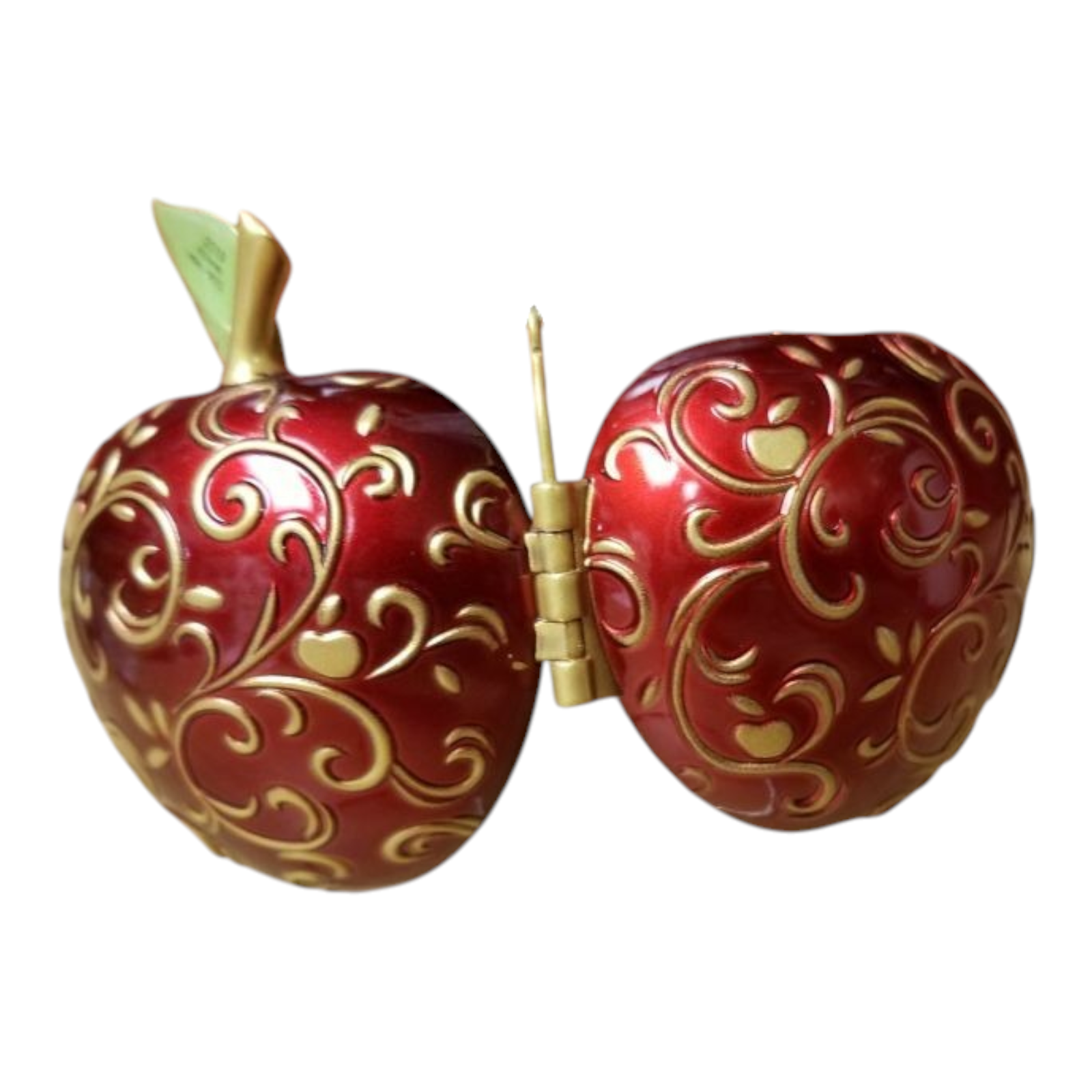 Celebrate Disney’s original princess with this luxurious 2019 edition of the Hallmark Keepsake Ornament titled The Fairest One of All. The design features Snow White enclosed within a richly detailed red-apple diorama: on one side she holds a gentle white dove; on the other sits an enchanted mirror inscribed “The Fairest One of All.” Crafted from die-cast metal with gold-painted vine accents, the piece blends fairy-tale elegance with holiday décor. The ornament is designed by artist Joanne Eschrich and is part of Hallmark’s Disney collection.