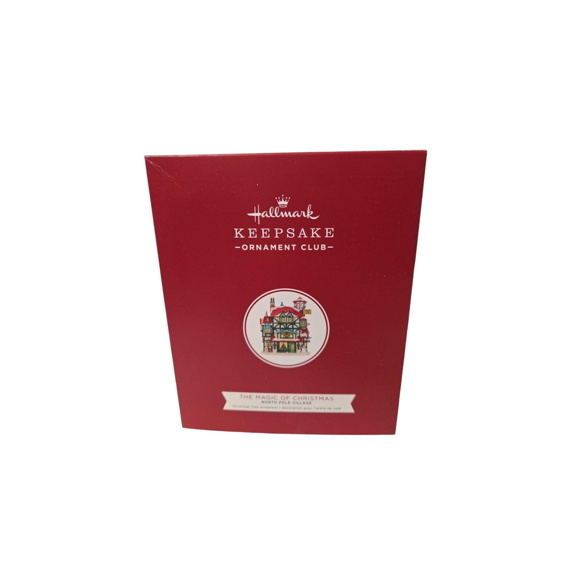 Bring the wonder of Santa’s hometown to your tree with The Magic of Christmas ornament from Hallmark’s North Pole Village series. This charming piece features a festive North Pole building design filled with cozy architectural details, snow-covered accents, and warm holiday colors that capture the enchantment of Christmas at the North Pole. Designed to light up when connected to a compatible power source, it adds a welcoming glow and storybook charm to any holiday display. The ornament comes new in its original Hallmark Keepsake box, including the original packaging and tag. It illuminates when connected to a Keepsake Power Cord and does not use replaceable batteries.