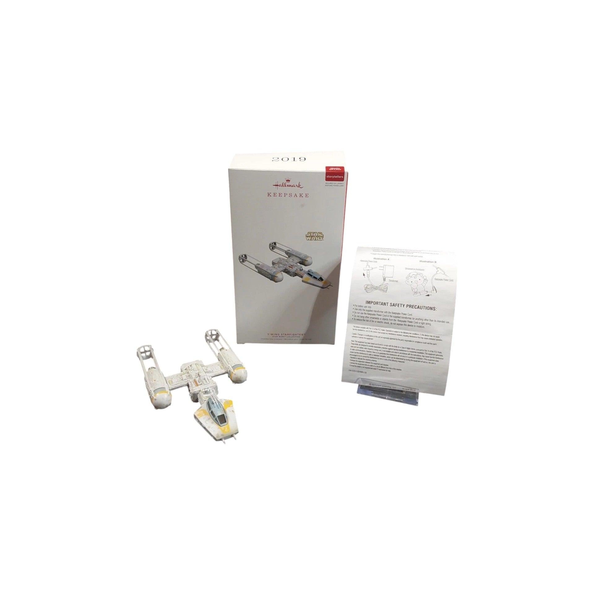 This detailed Hallmark ornament features the legendary Y-Wing Starfighter from Star Wars, accurately sculpted with its distinctive twin engines, exposed framework, and battle-worn Rebel Alliance design. Known for its durability and heavy firepower, the Y-Wing played a critical role in many iconic space battles, making this ornament a must-have for Star Wars fans and sci-fi collectors. The ornament comes packaged in its original Hallmark Keepsake box with hang tag. It does not require batteries, cords, or light strings for display.