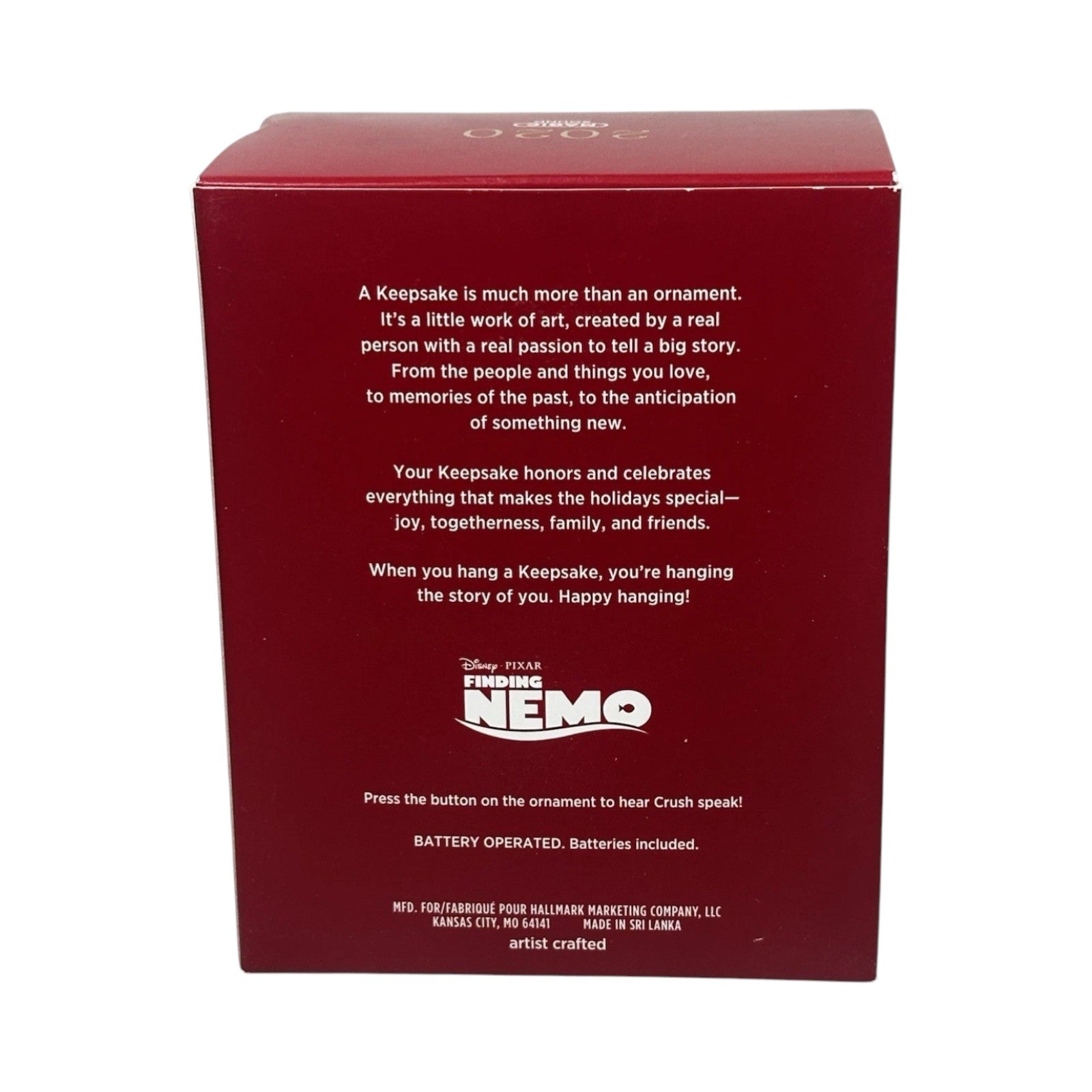 Ride the East Australian Current and bring relaxed ocean vibes to your holiday décor with this fun Finding Nemo ornament from Hallmark featuring Crush, the totally tubular sea turtle. Captured mid-swim with his easygoing grin and laid-back surfer attitude, this ornament perfectly reflects Crush’s free-spirited personality from the beloved Disney·Pixar film. Bright colors and expressive sculpting make it a standout addition for Pixar fans and collectors alike. It comes packaged in its original Hallmark Keepsake gift box with artist tag and packaging materials. This ornament is decorative only and does not require batteries, cords, or light strings.