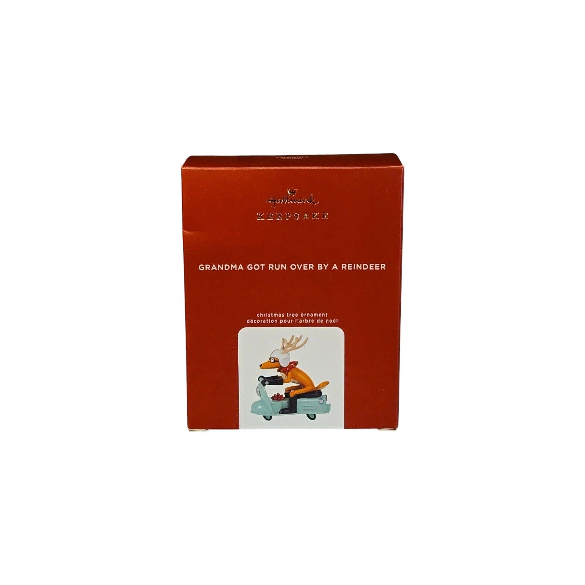 This humorous Hallmark ornament brings the classic novelty Christmas song “Grandma Got Run Over by a Reindeer” to life with a playful, lighthearted design that fans of the song will instantly recognize. Featuring whimsical details and exaggerated character styling, the ornament captures the fun and comedy that have made the song a holiday favorite for decades. It’s a perfect addition to novelty-themed trees or for anyone who enjoys a good laugh during the Christmas season. The ornament comes packaged in its original Hallmark Keepsake box with hang tag. It does not require batteries, cords, or light strings for display.