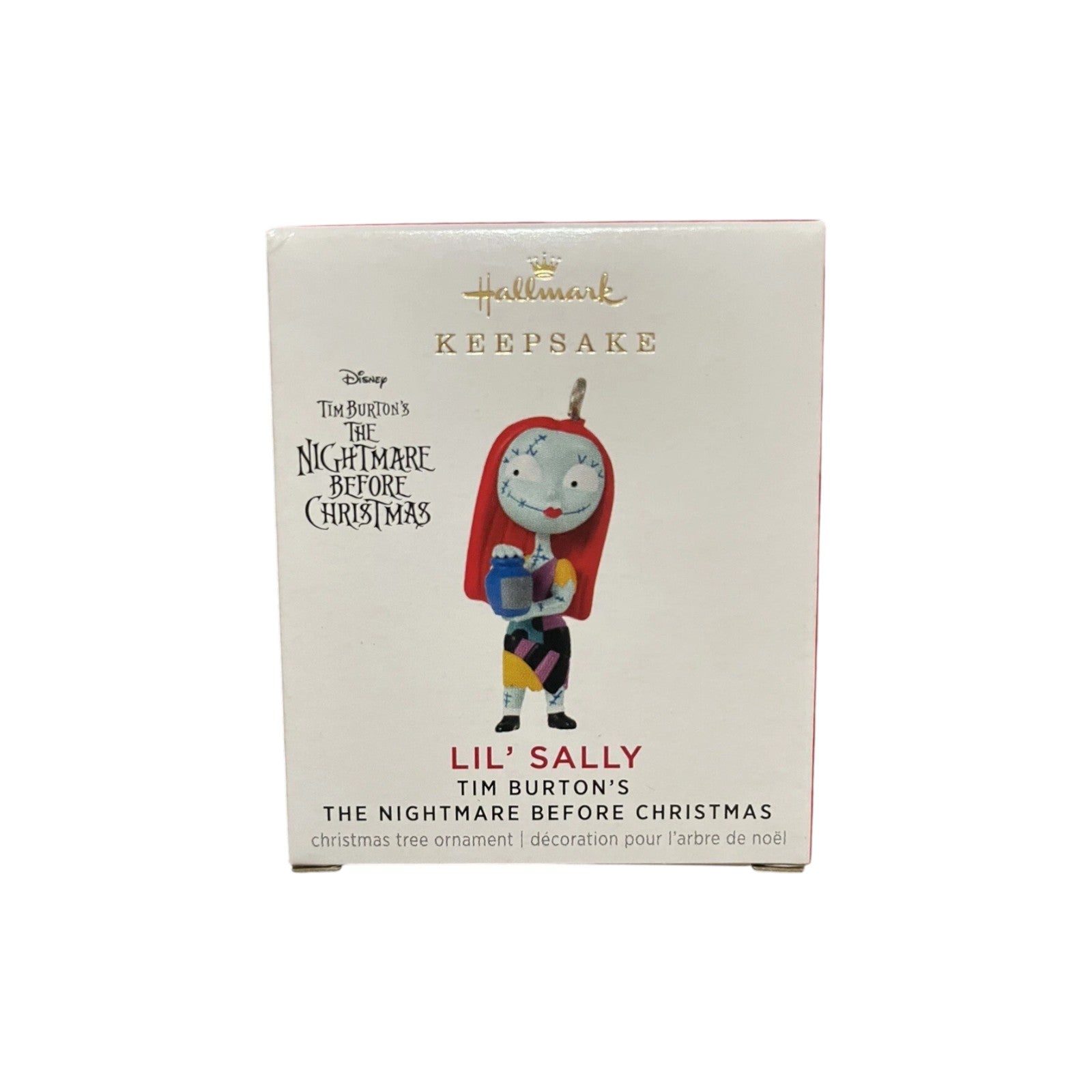 Add a dash of mini Halloween Town enchantment with the 2021 Lil’ Sally miniature ornament. Crafted by Eddie Hui, this delightful tiny keepsake features Sally clutching one of her potion jars, her vivid patchwork dress and bright red hair captured in charming detail. Measuring just 0.51″ W × 1″ H, it arrives fully assembled in its original box—no batteries, lights, or cords needed. Perfectly sized for mini trees or compact displays.