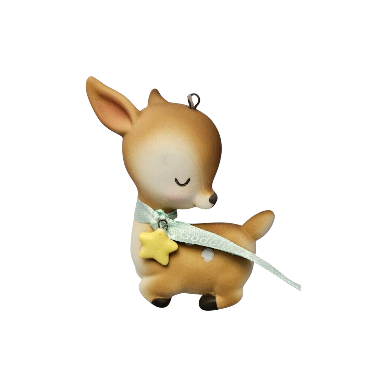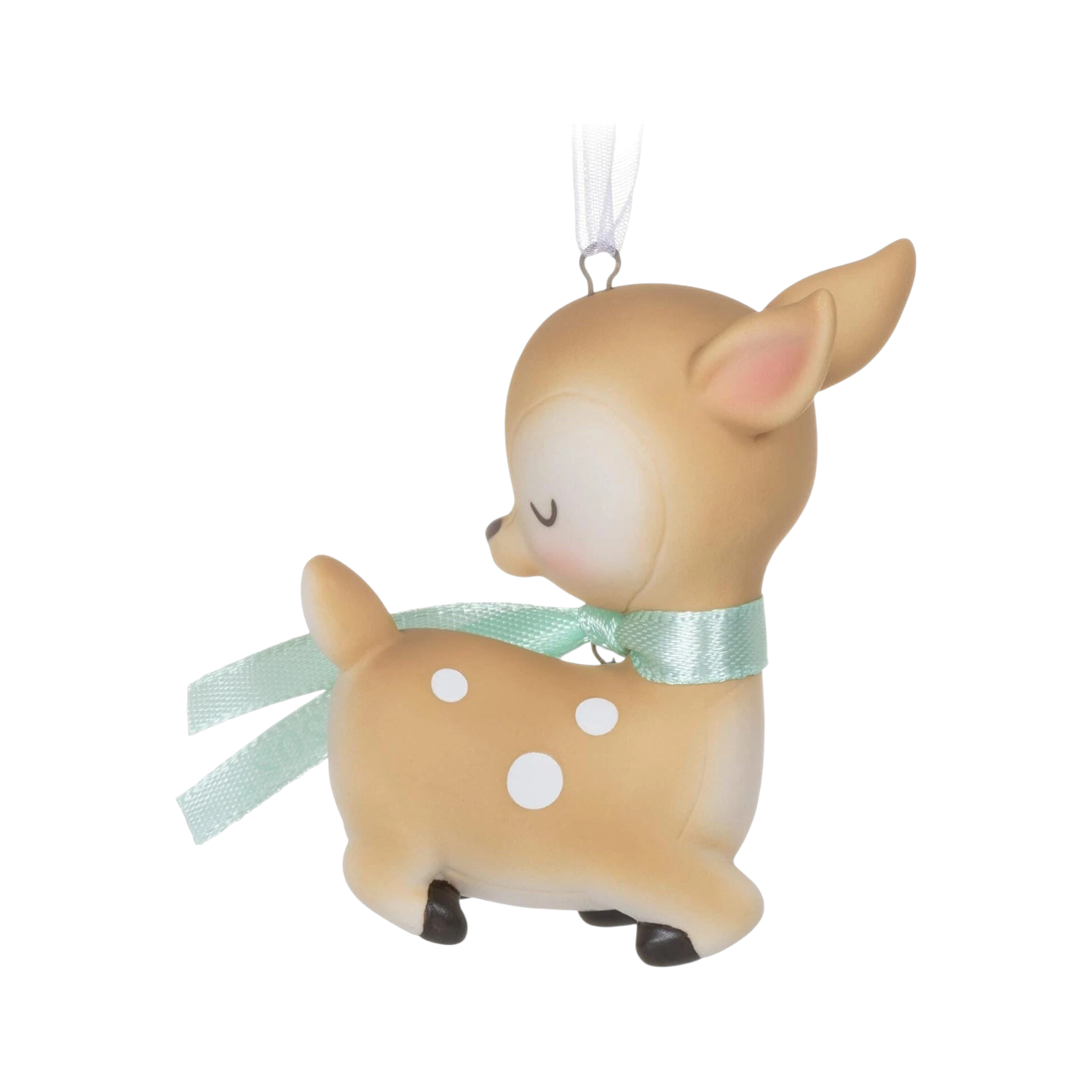 Celebrate the cherished bond with your godchild through the 2022 Godchild ornament from Hallmark. This endearing porcelain ornament features a sweet fawn adorned with a mint-green ribbon, year-dated "2022," and a gold star charm. The delicate design captures the innocence and purity of a godchild's love, making it a timeless keepsake for years to come. Crafted by artist Gregor Benedetti, this ornament is a perfect gift to remind your godchild that they hold a special place in your heart.